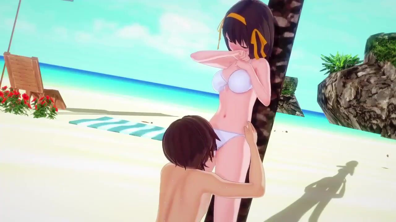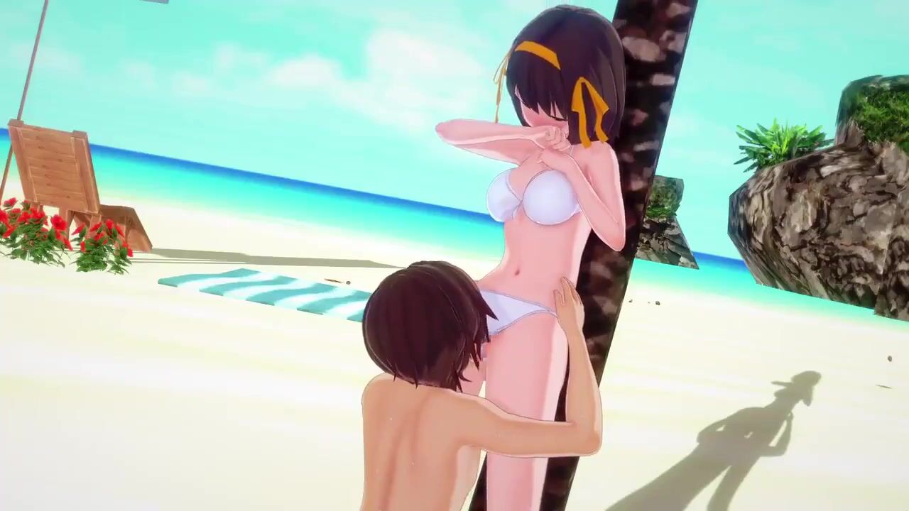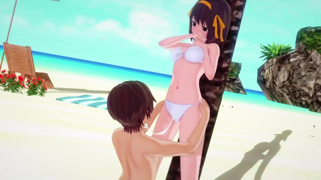 A beautiful woman named Harhi is enjoying herself on the beach, taking in the sun and sand while indulging in some oral sex with her partner