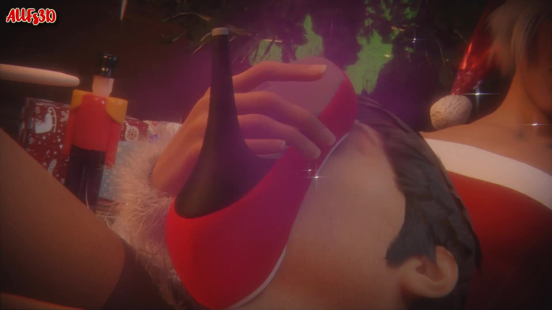 A blonde beauty dressed as Santa Claus enjoys a holiday footjob in high definition 3D format