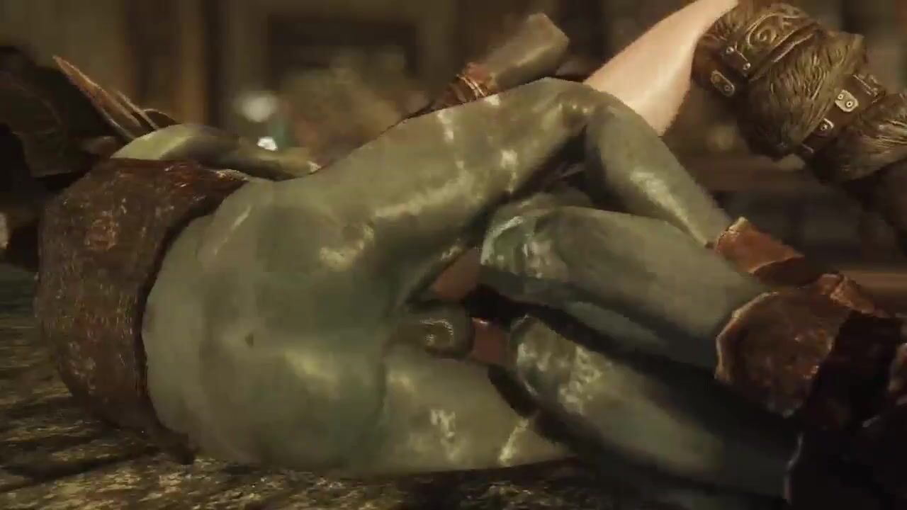 This hentai PORN video description involves a fair-skinned, blonde elf who has big breasts being pushed down by a monster and penetrated deeply into her womb.