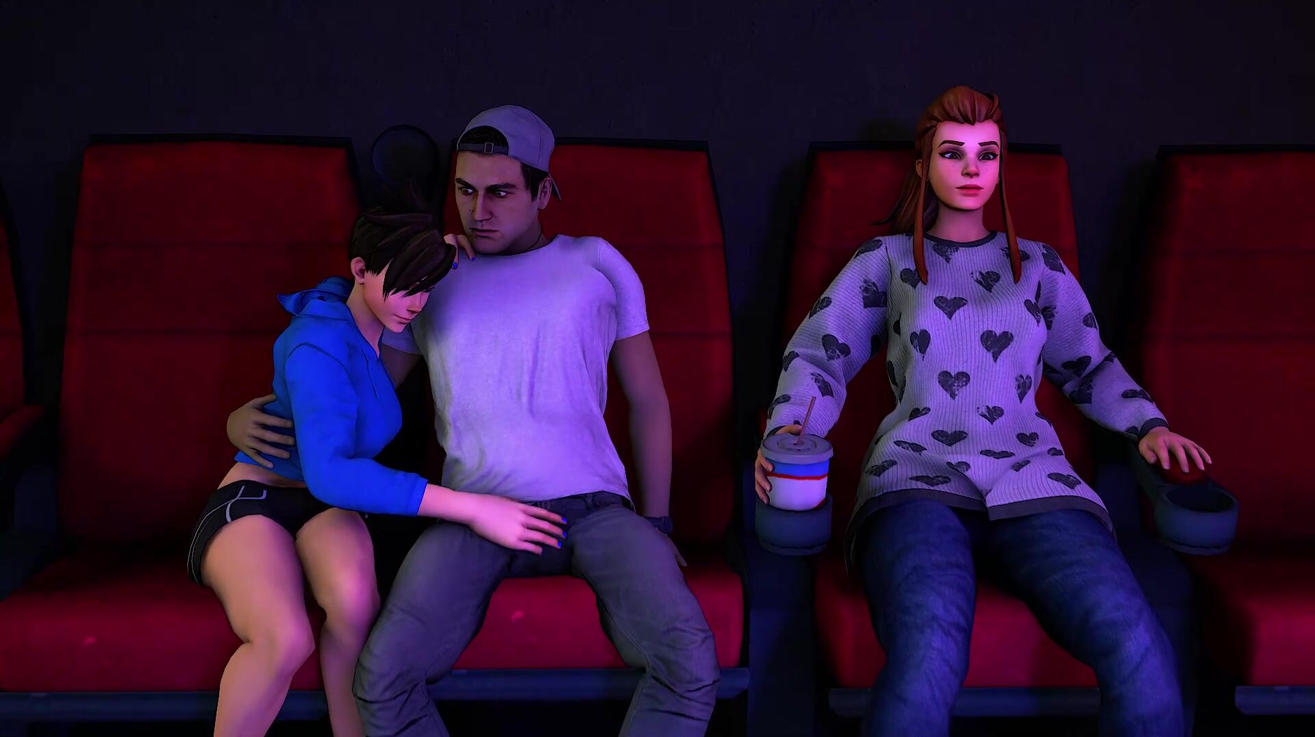 A hot and steamy threesome at the cinema with Briggitte and Tracer from Overwatch!