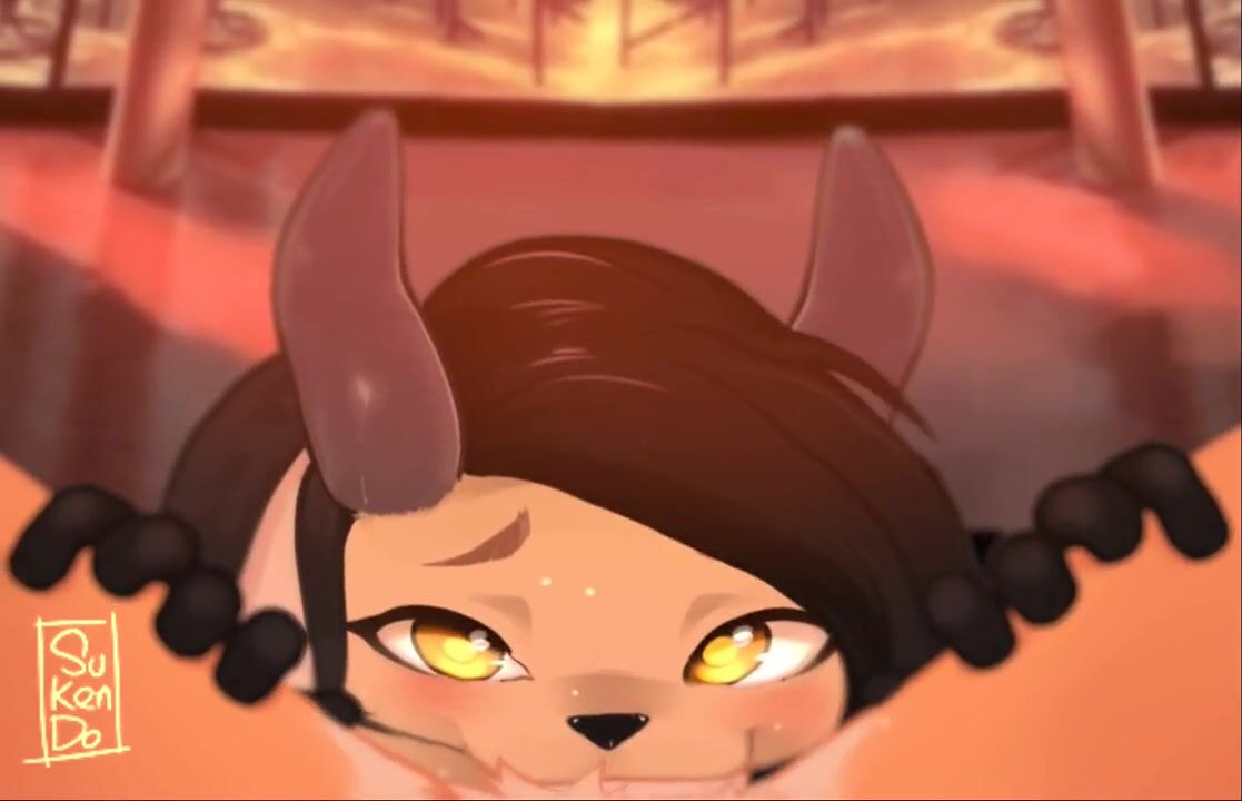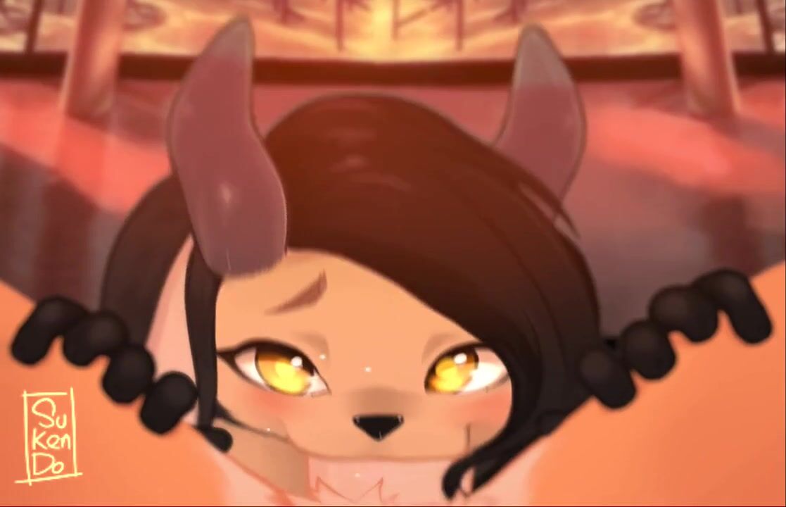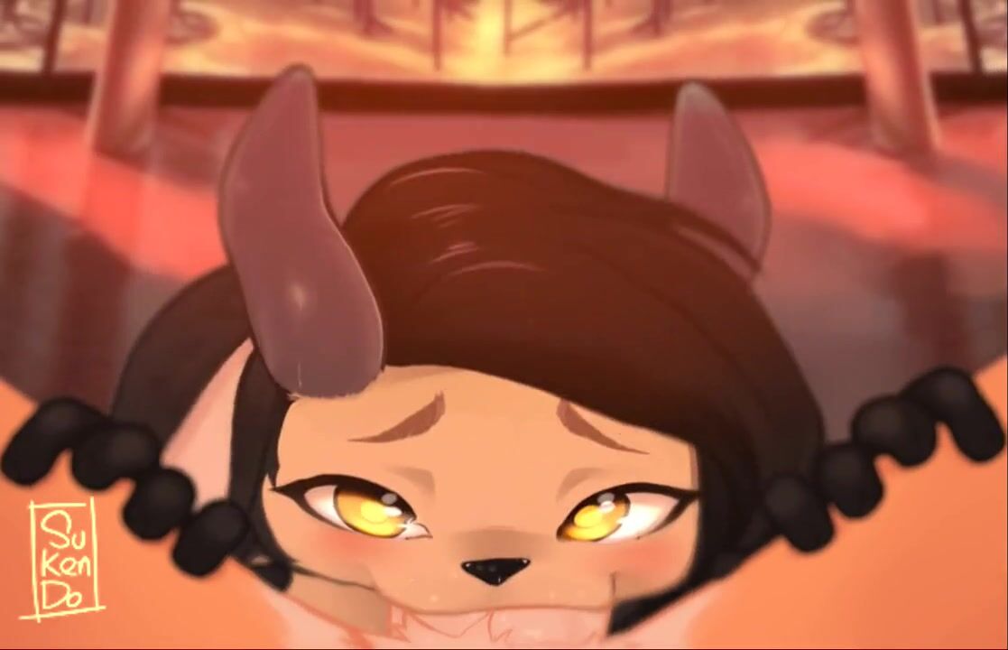 A hot girl is sucking the cock of a mysterious guy with a furkendon over his face in a dark room, and it feels so good that she cant stop moaning