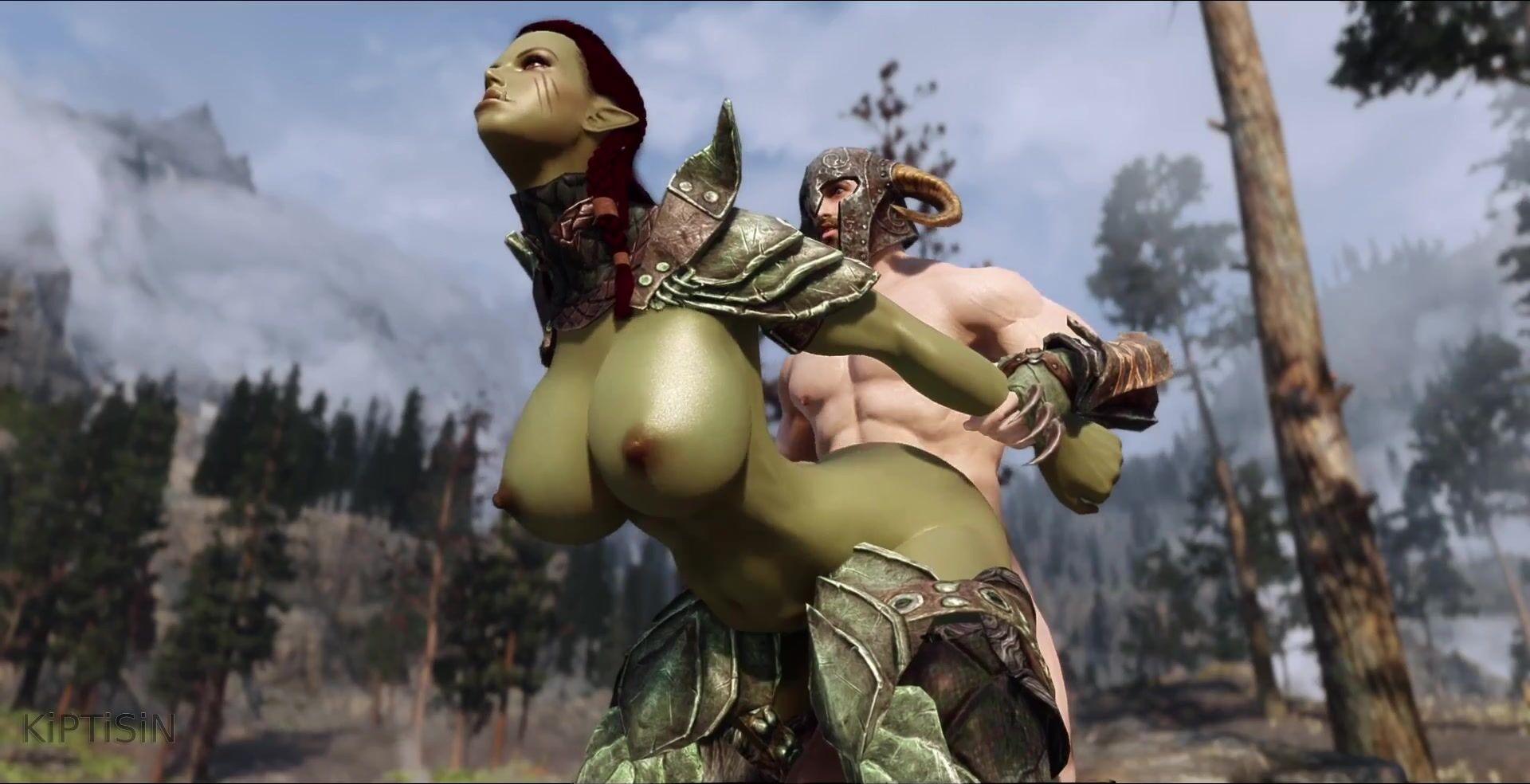 A lovely young orc warrior enjoys the well-endowed member of a fierce nordic warrior in this erotic fantasy hentai video