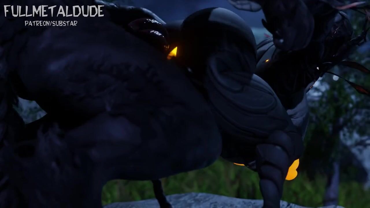 A werewolf and a female FEM-bot named Oberon [FullMetalDude] having an erotic encounter without any sound in the background