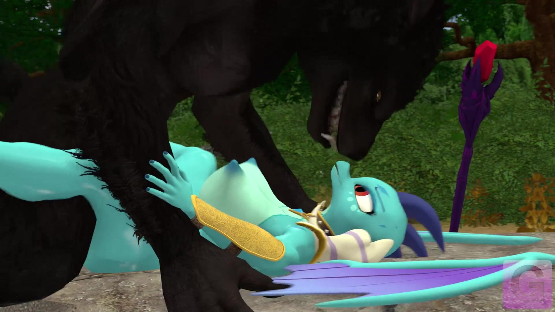 22In the peacefulness of the forest, Ember's meditation is perfect. However, someone in the forest wants to join her with their own method of meditation...2CWith his deep voice, MacStar as the werewolf and Gorilka as the musician, create an erotic atmosphere that enhances the sensuality of the moment. The sound of drums in the background adds to the mystery of the forest. Rephrases this hentai PORN video description.