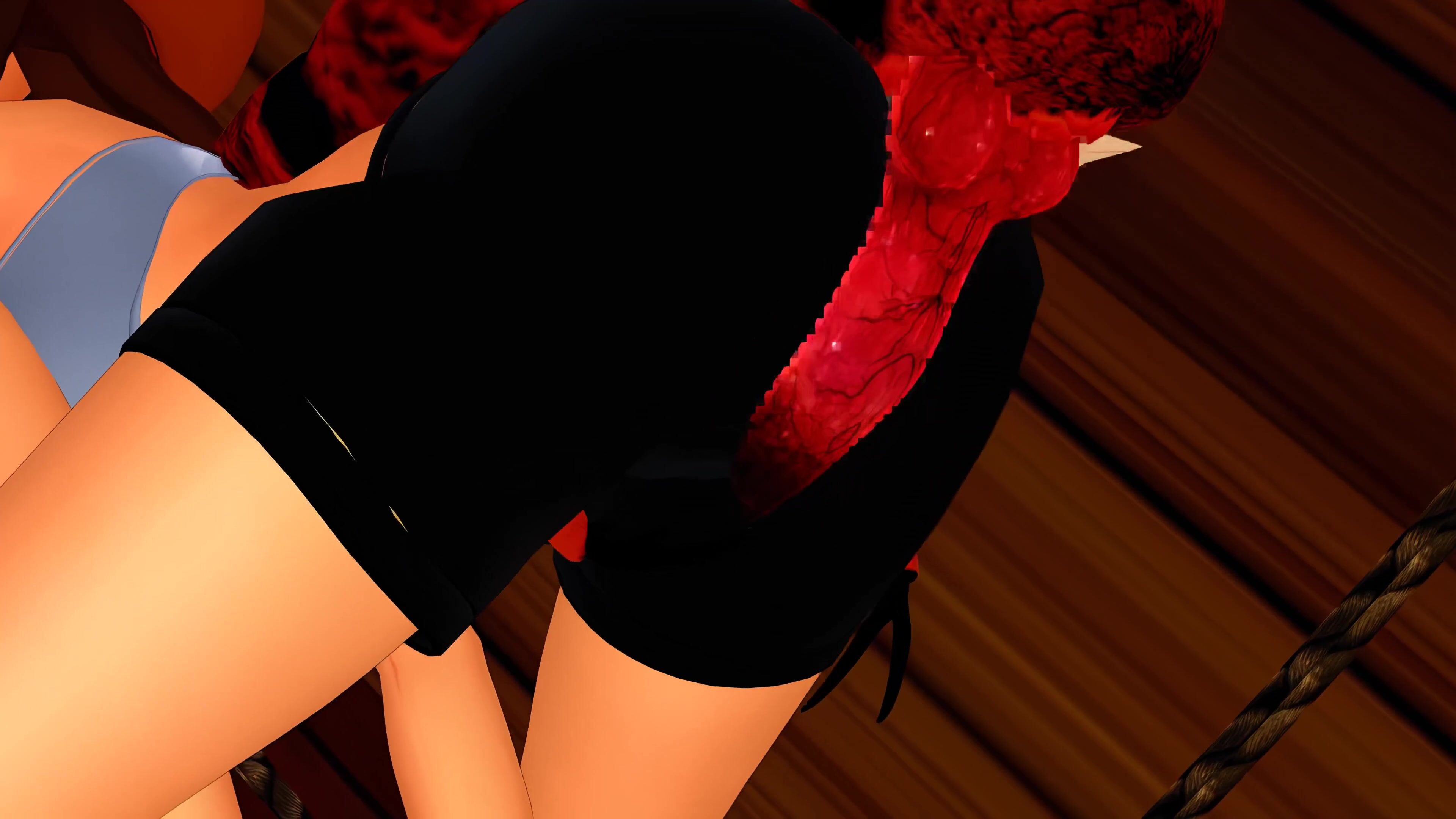 Watch as the sexy demon slayer fights off a horde of horny demons with her magical...