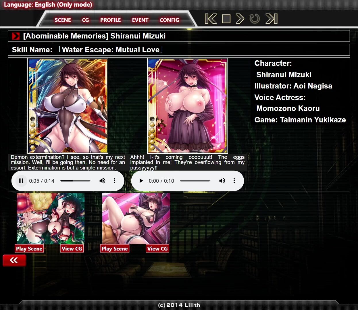 "[Abominable Memories] Shiranui Mizuki H-Scene Bonus Footage (Taimanin Asagi Battle Arena)"
