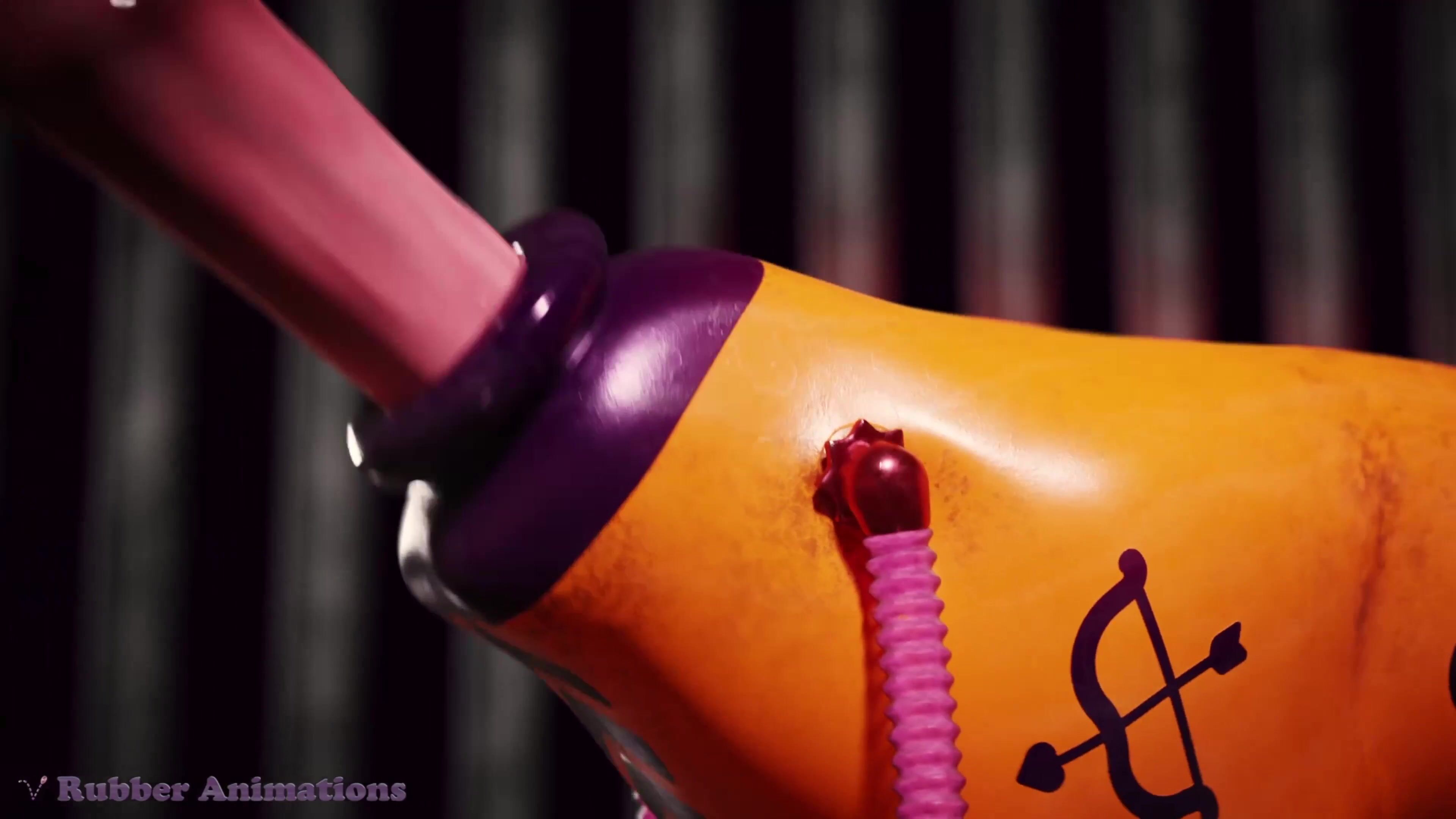 This porn parody video is about rubber and latex fetish in which a woman gets trapped in a rubber suit, unable to remove it. The video description explains that the scene involves bondage, domination, and rough sex. You can watch it on Twitter or support the creator on Patreon for more exclusive content.