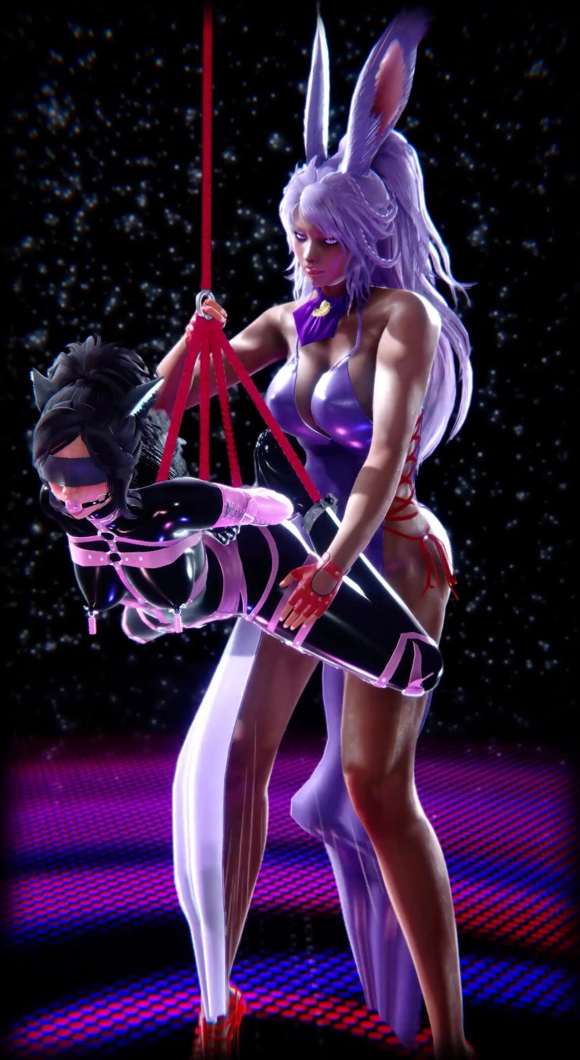AnaLagrange, a busty bunny, takes on a suspended cat while railin’ in a train station