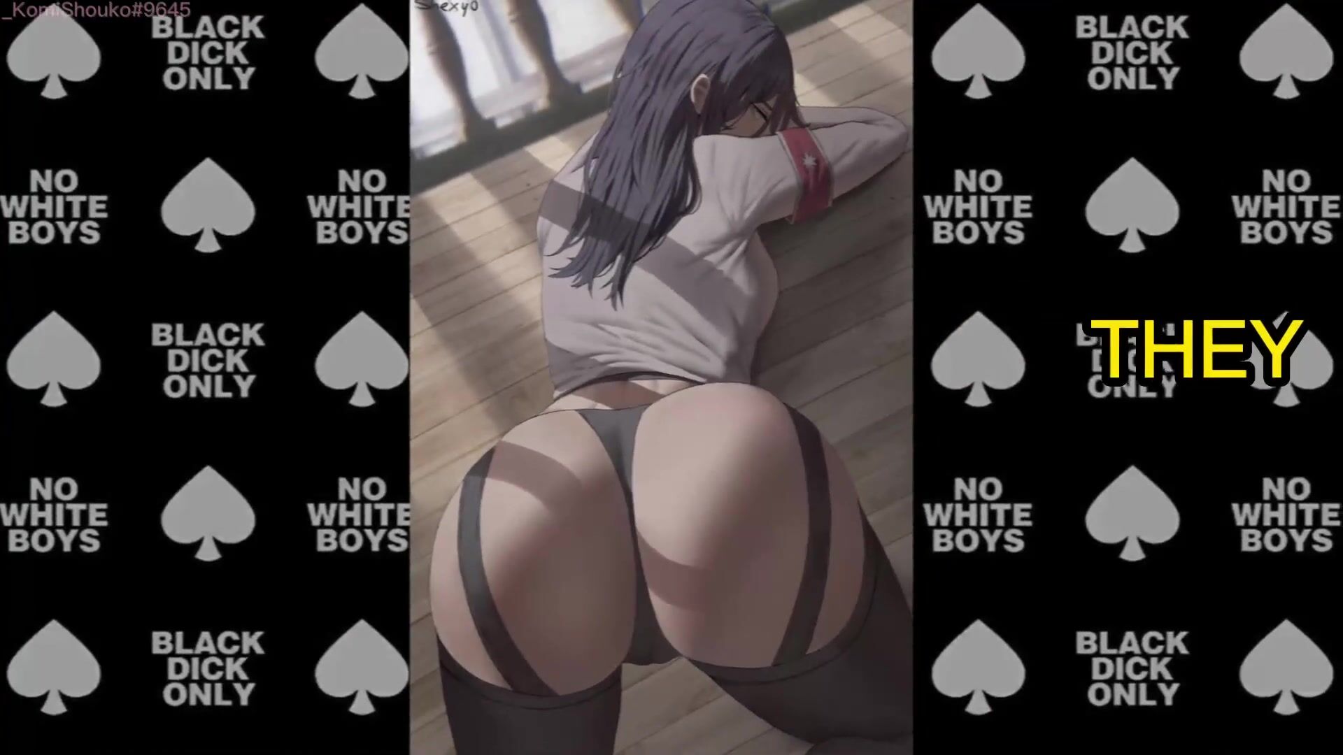 This is a hentai PORN video description of an attack on titan porn scene where the characters are blacked out and engage in group sex. It's available on Discord.