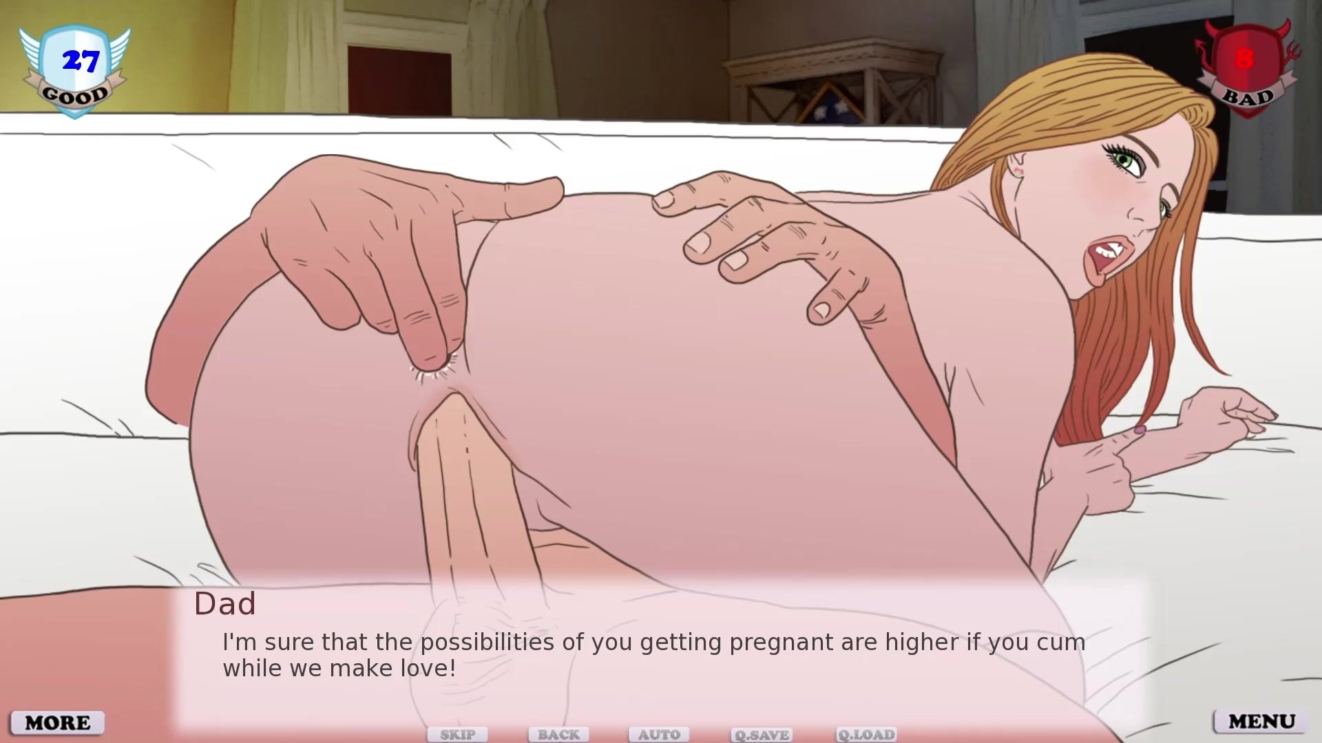 DETAILED PLAYTHROUGH - GOOD GIRL GONE BAD [Eva Kiss / Female Perspective / 2016]: Chapter 26. Pregnant Ending With Dad In this alternate ending to The Loving Path, Ash decides not to join her life with Jessica, but instead carry on with her covert relationship with Dad, get pregnant, and raise a k*id born from this loving union. In addition to featuring this path, we also show the fates of several other characters, including Iris and Natasha. Playlist: rule34video.com/playlists/726012/good-girl-gone-bad-the-loving-path/ Game link: f95zone.to/threads/good-girl-gone-bad-v1-2-jasmin-dlc-eva-kiss.2633/ Patreon link: www.patreon.com/Evakiss