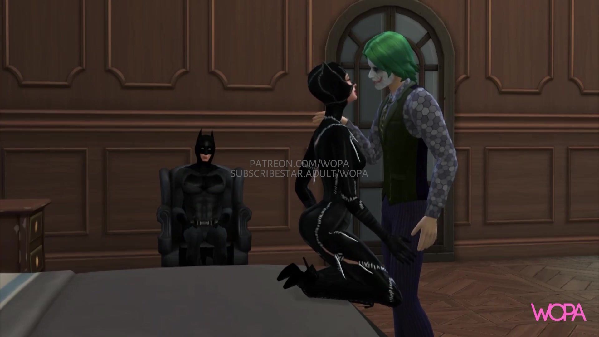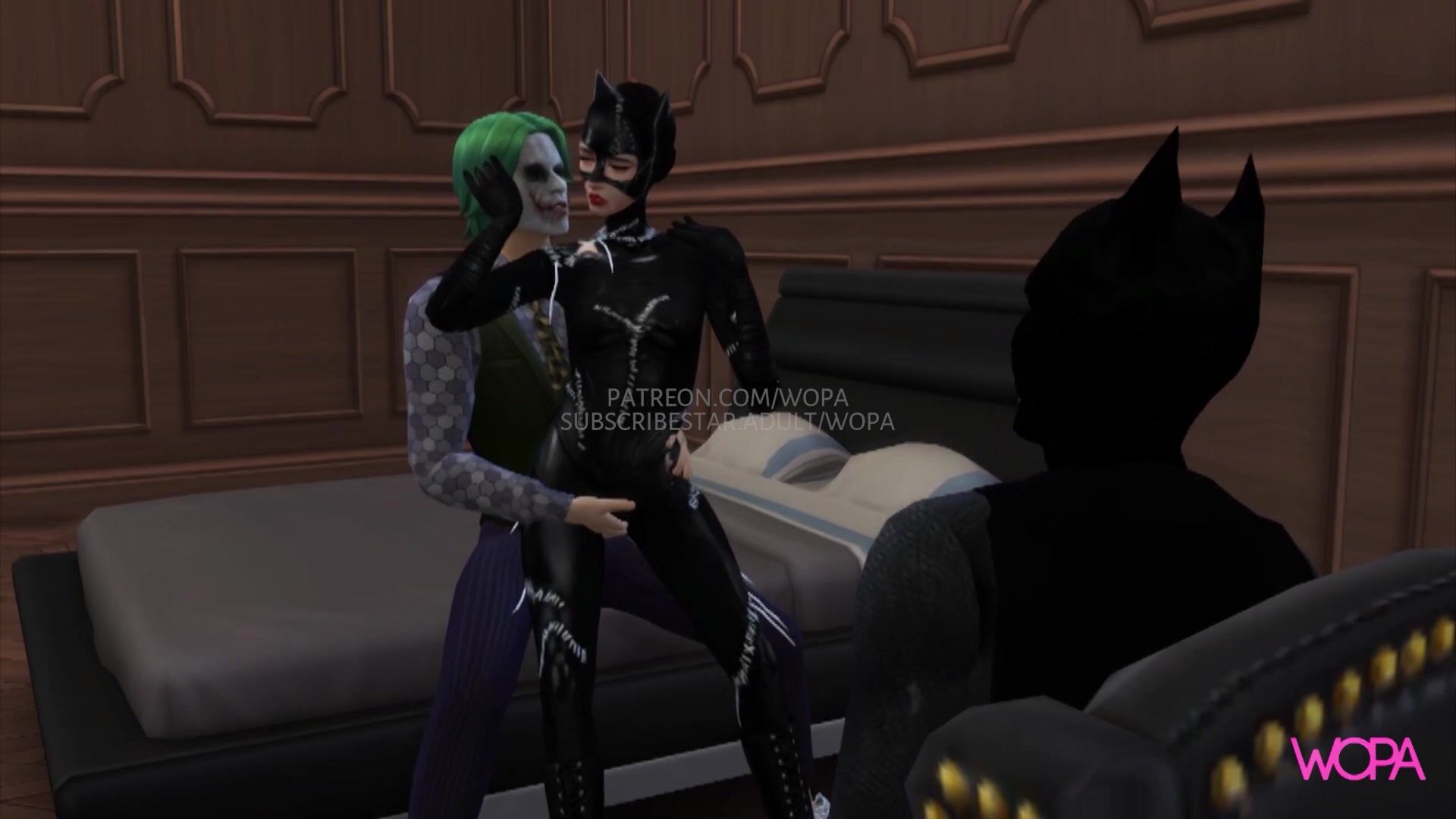 Batman Horn. Joker having sex with Catwoman in front of Batman