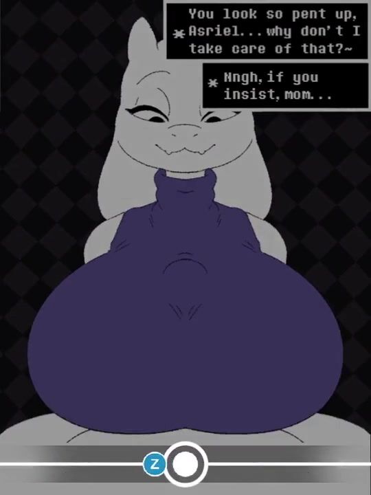 Beat banging Asriel and Toriel on the bedroom floor, while their son, Frisk, watches from the shadows