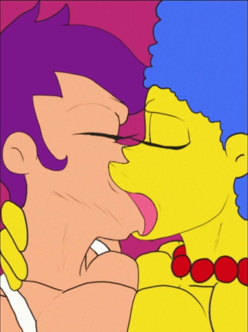 'Bender and Fry having sex with Leela and Marge in an office desk'