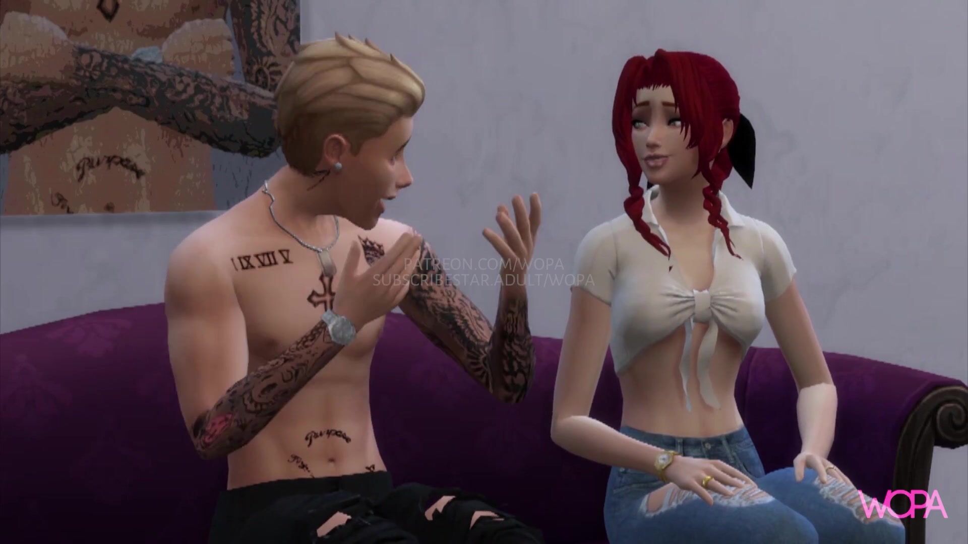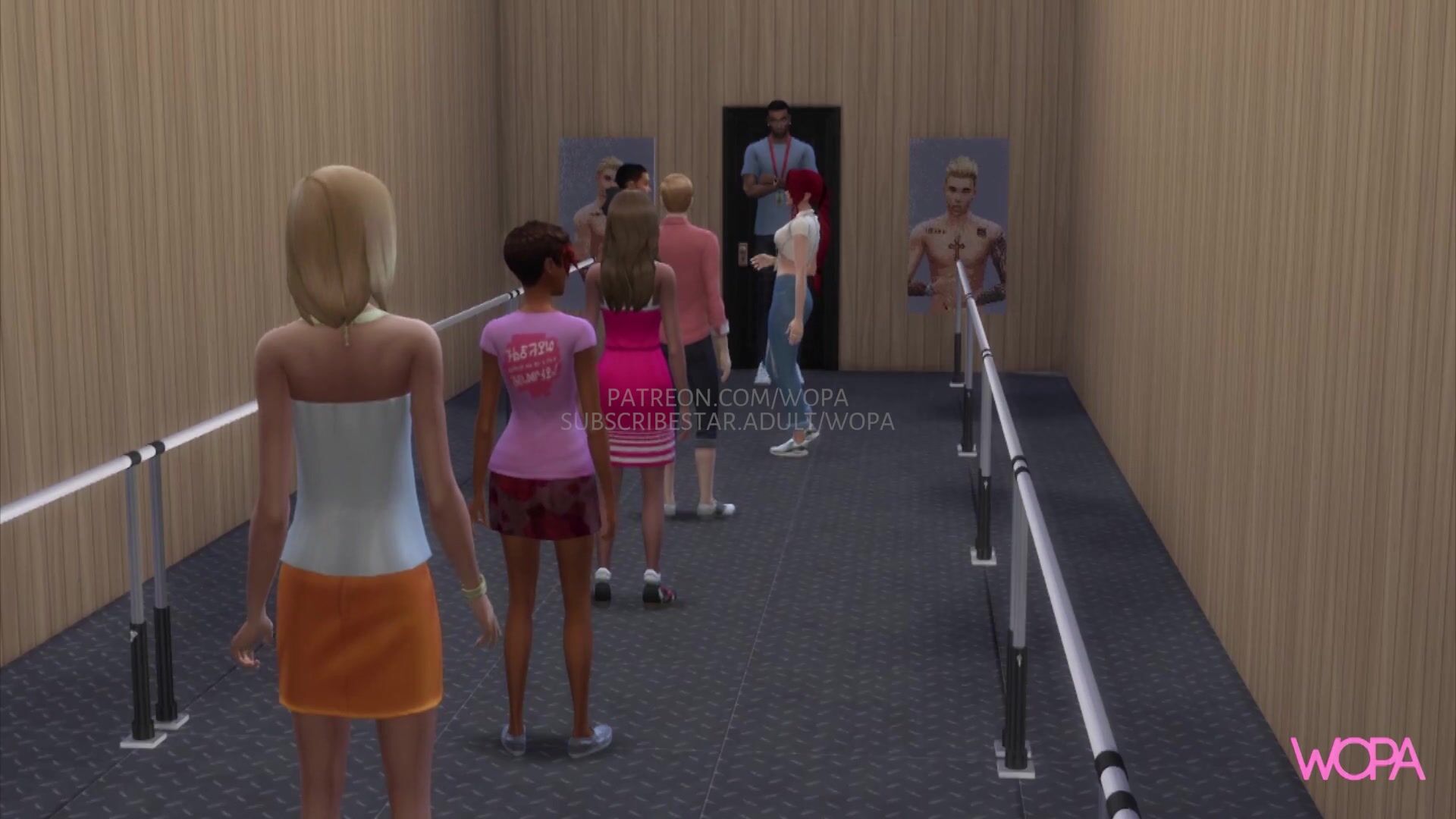 This video description is about a popular pop star, Justin Bieber, having sex with one of his fans in her dressing room. The fan's boyfriend stands outside the door waiting for her to come out.