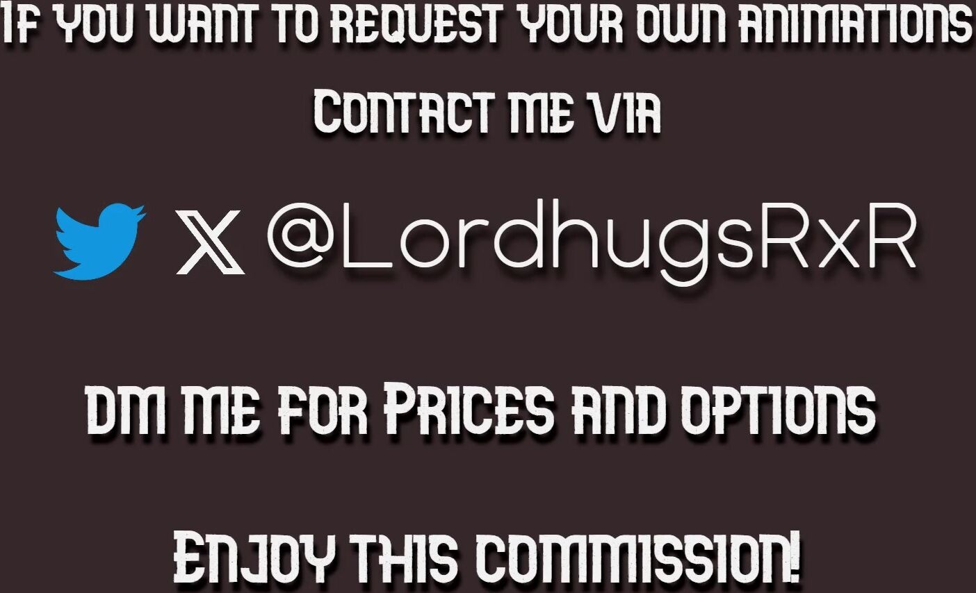 If you want to check the HD version or request your own animation, contact me via Twitter! (X) @LordhugsRxR @LordhugsRxR @LordhugsRxR
