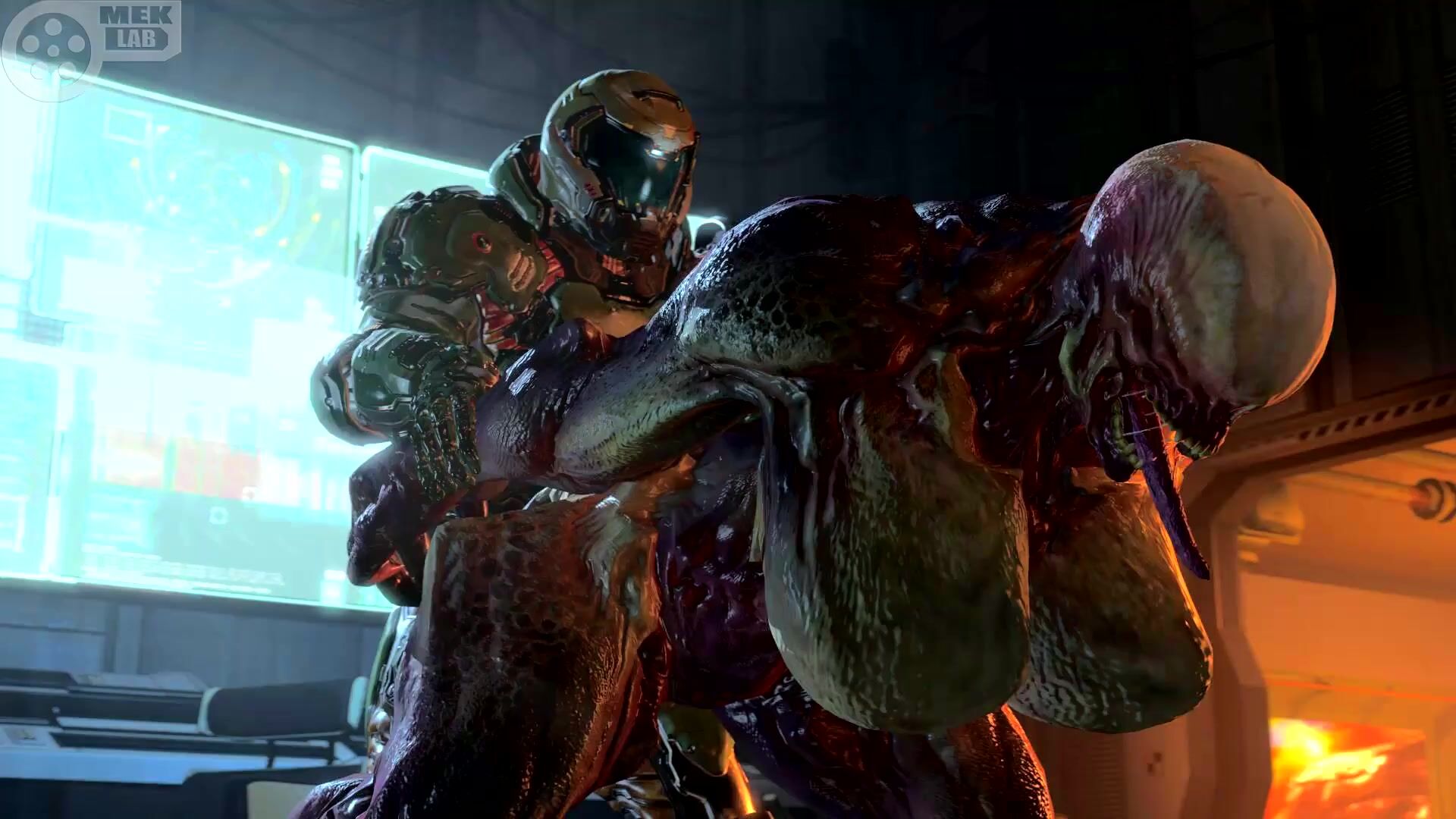 Description: In a world of darkness and chaos, the Doomsday Slayer must face off against a powerful Hell Knight who seeks to destroy humanity. As the battle rages on, the Slayer realizes that the only way to defeat his foe is by fucking him senseless in a demonic ritual.