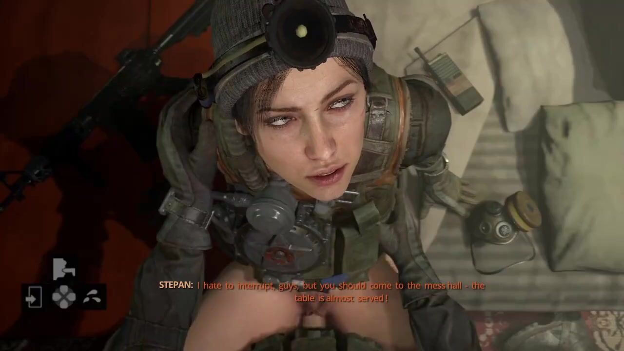Anna always makes sure to get good use of her downtime between missions. And thanks to Artyom, one of her needs is being met. Sadly it might be slightly cut short lived since the mess hall has their food ready. After all you need fuel for fighting, and fucking.