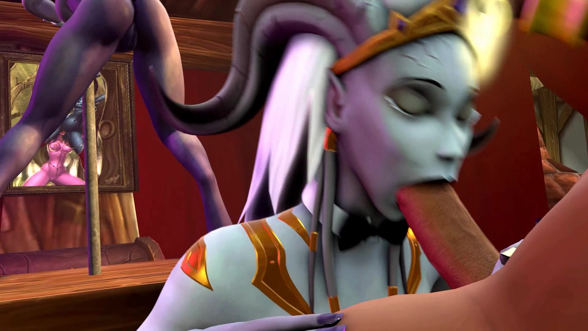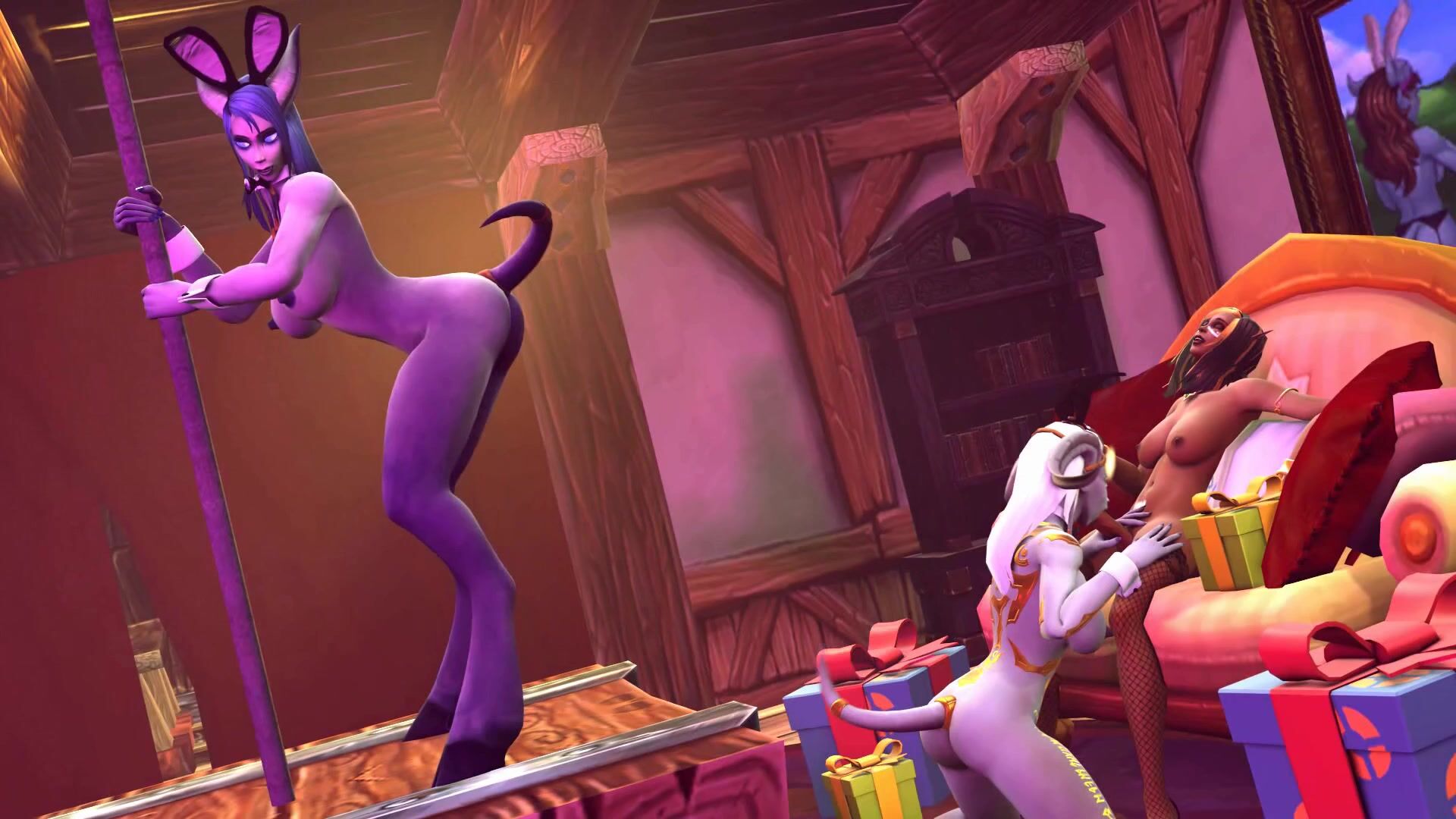 Three horny draenei girls meet up with a hot futa man for a sexy threesome in this...