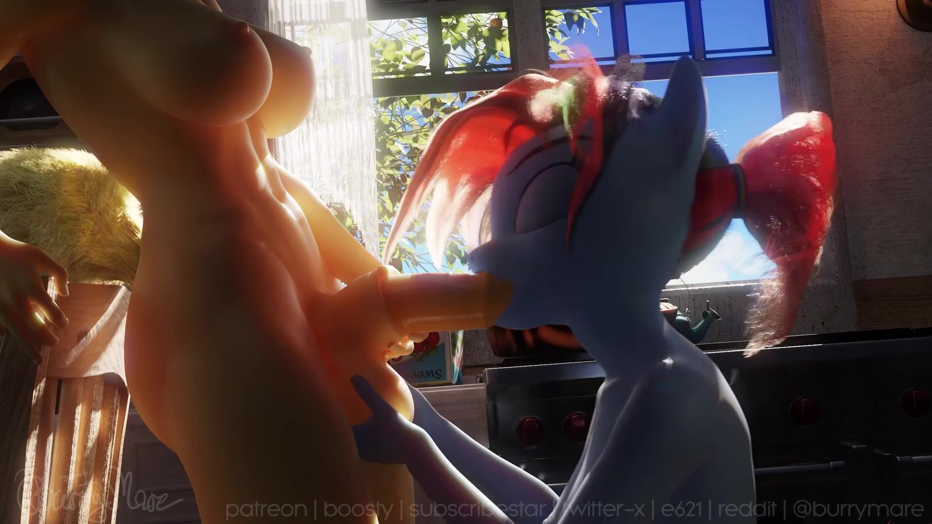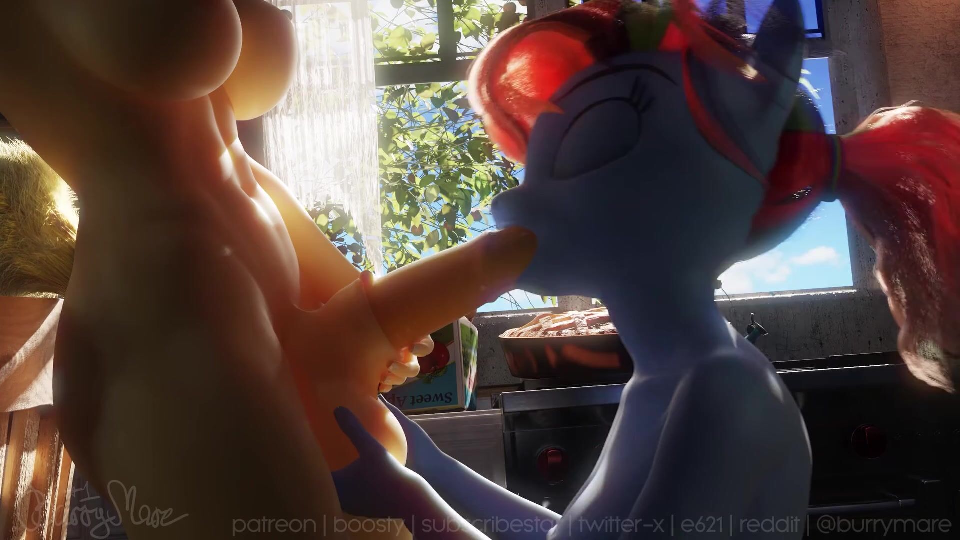 Hello everyone! You asked for it - you got it! A continuation of a solo animation featuring AJ, now a duo with Dash! Also a chance for me to showcase new hair in action and also blowjob setup with all the dynamic stuff. Happy how it turned out :) Remember to check out part 1 if you haven't seen it: https://rule34video.com/video/3594837/burrymare-apple-pie/ Hi-res uncompressed 2K MP4 version as well as more exclusive and early access content available at my Patreon/Boosty/Subscribestar: https://linktr.ee/burrymare https://www.patreon.com/burrymare