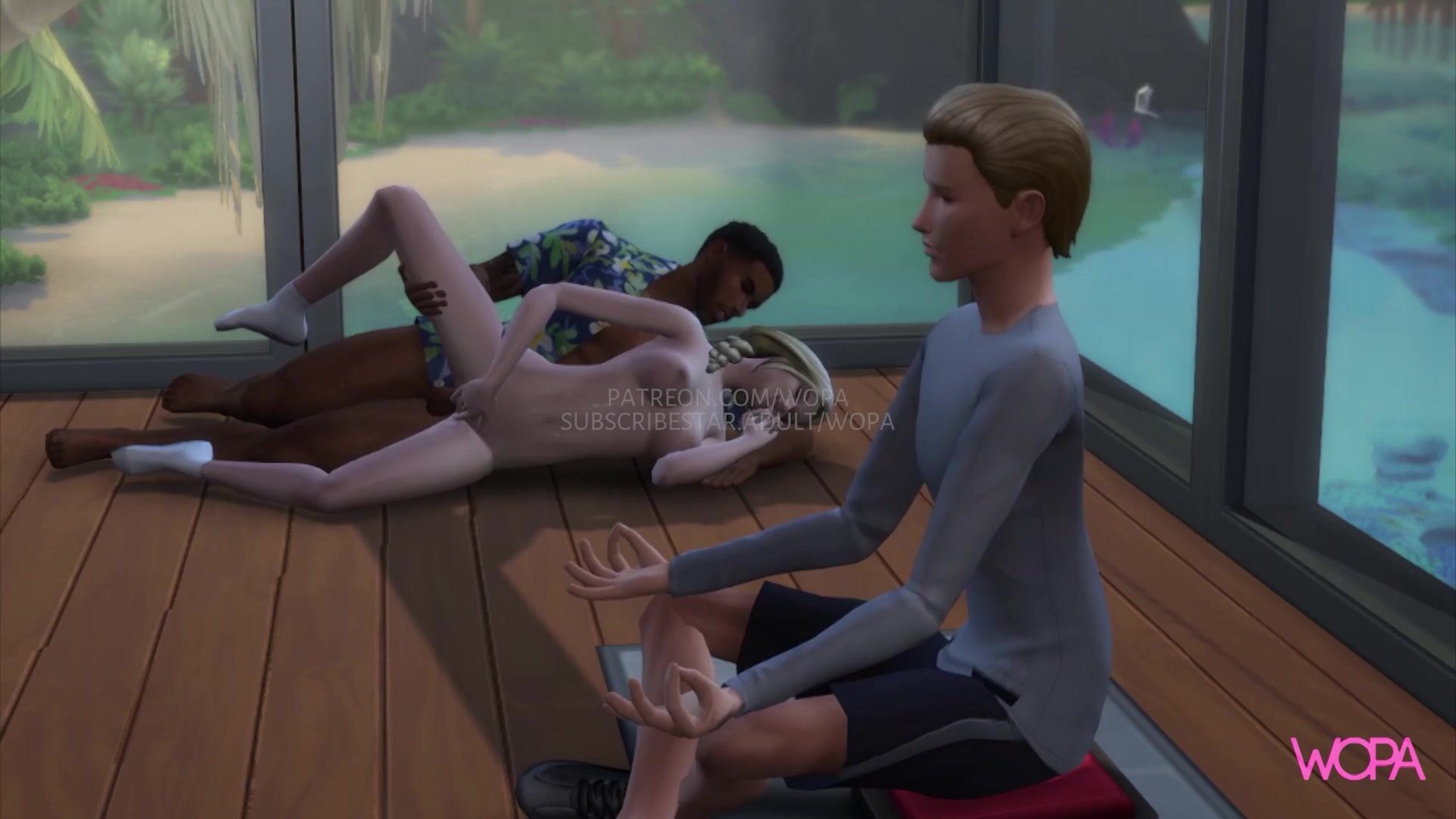 Busty blonde cuckolded by her husband and massage therapist, while practicing yoga