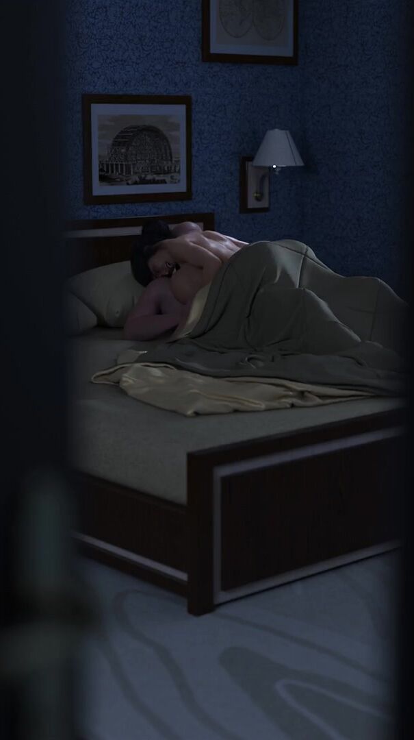 Busty MILF in tight jeans gets pounded by two massive cocks while tied up and blindfolded on the bed