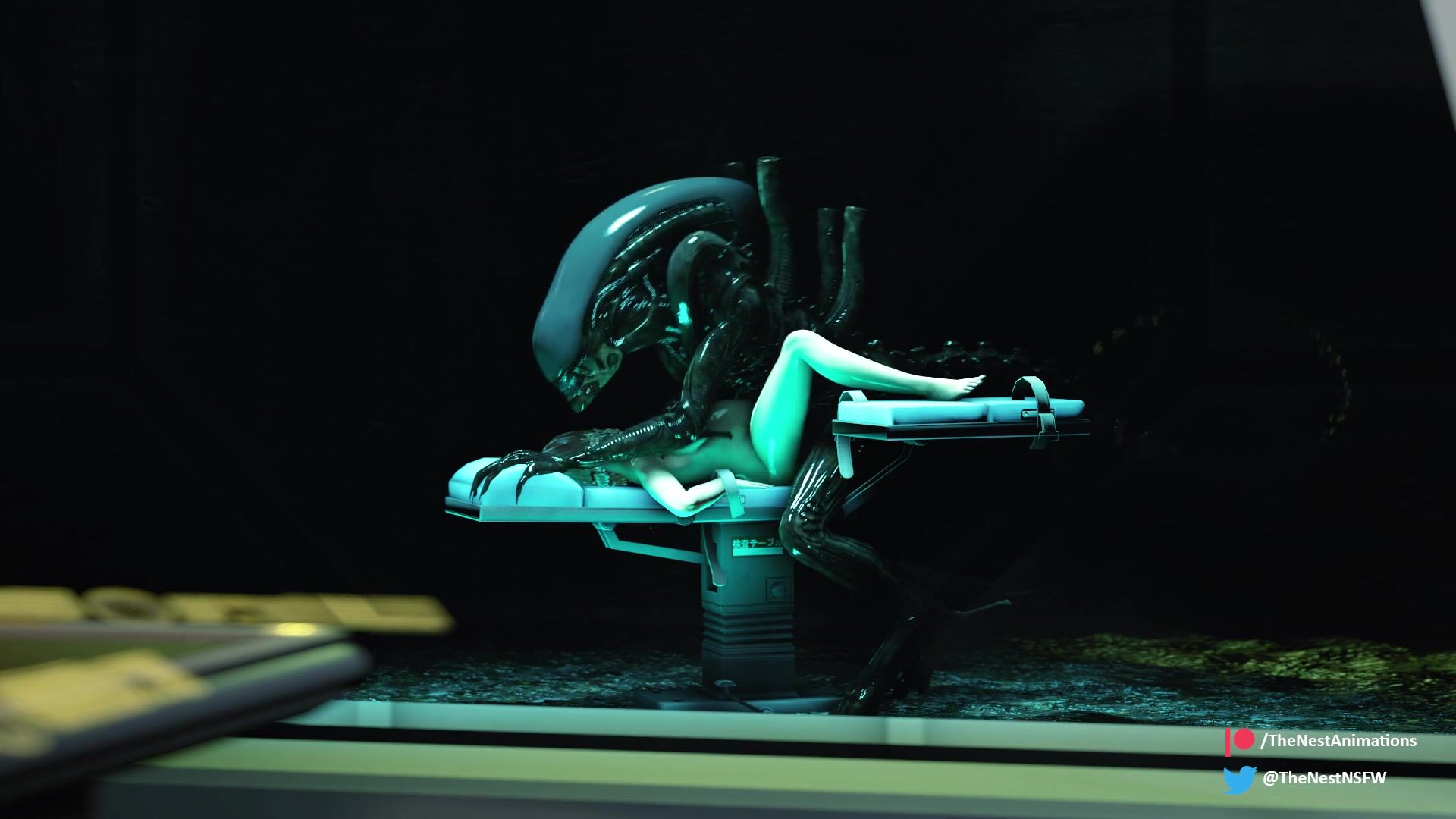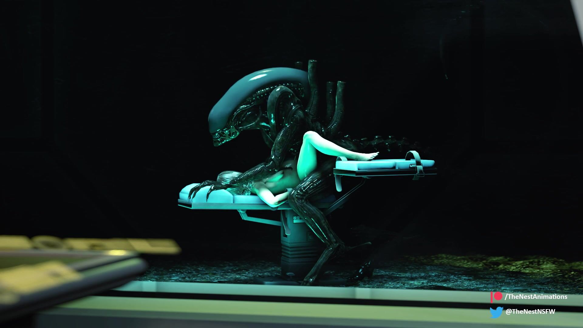 A willing test subject on board the Icarus gets railed by a Xenomorph. For science.