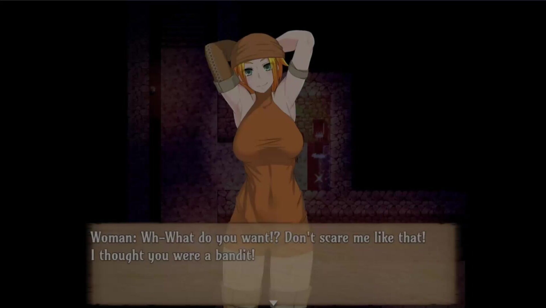 This hentai PORN video description rephrases to: "The Dead End is a translated and published porn game by Kagura Games, developed by Osanagocoronokimini.0A0AThis Porn Video starts with the main heroine Nina, the Explorer. When you come across her again 2C she is trapped by a mimic. In this video 2C she is rescued by the protagonist and promise him a proper reward."