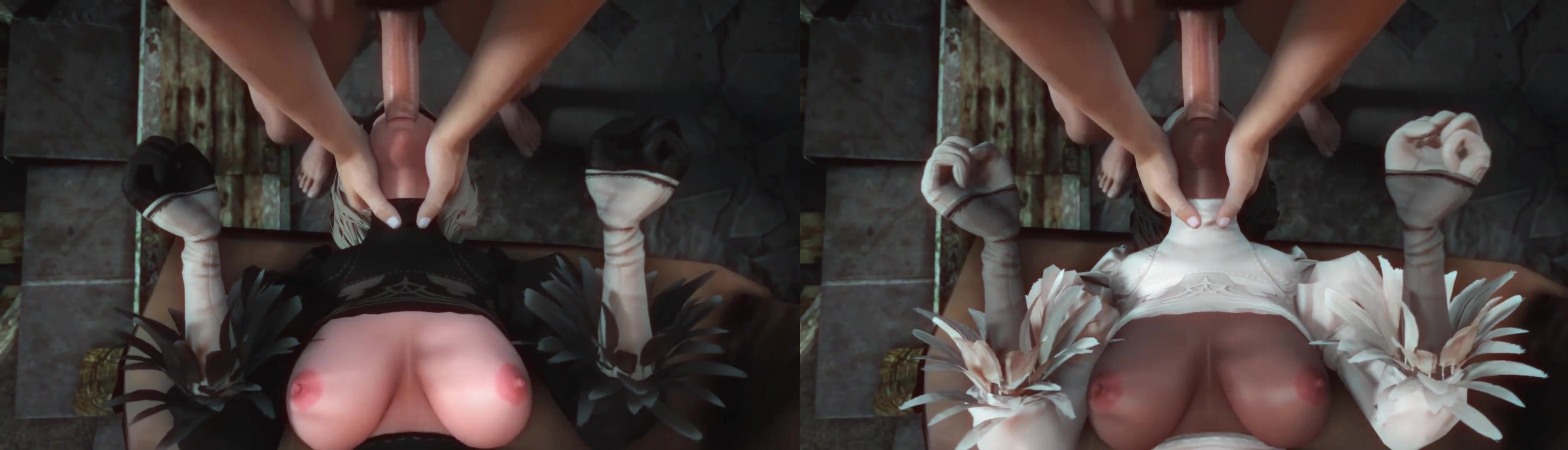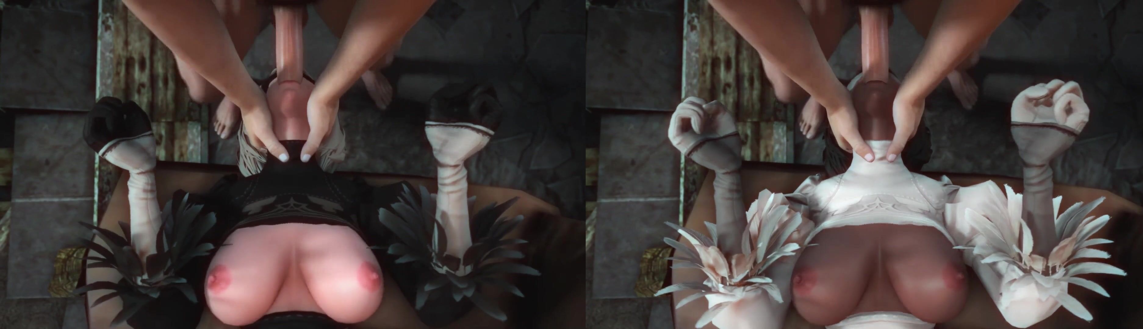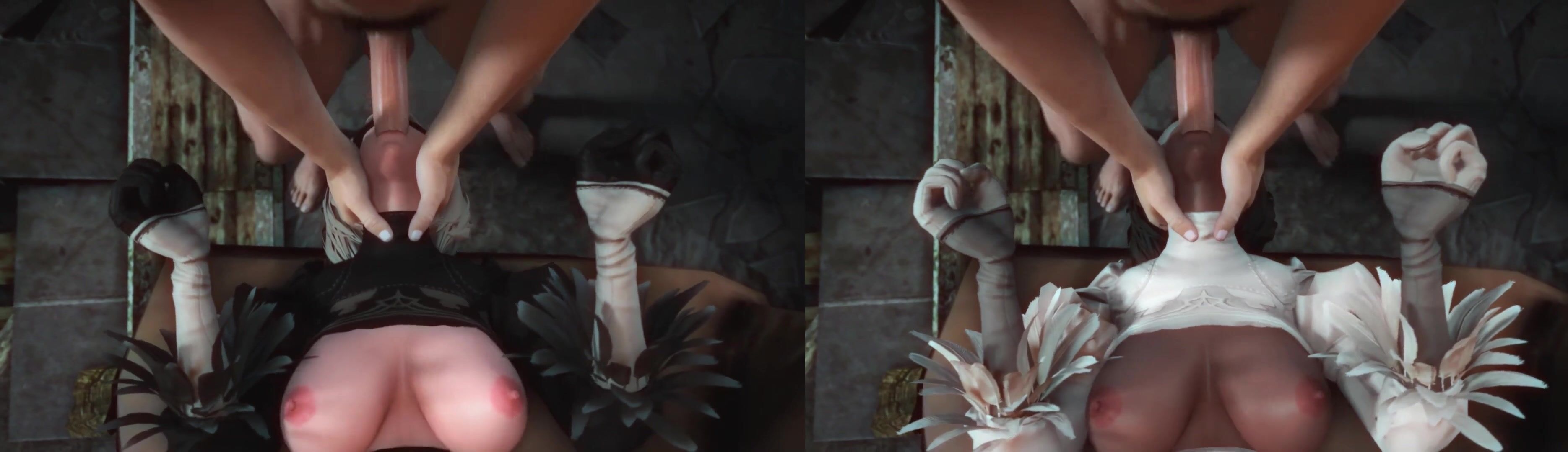 Split screen version of Lesdias' 2B/2P Throatfuck.