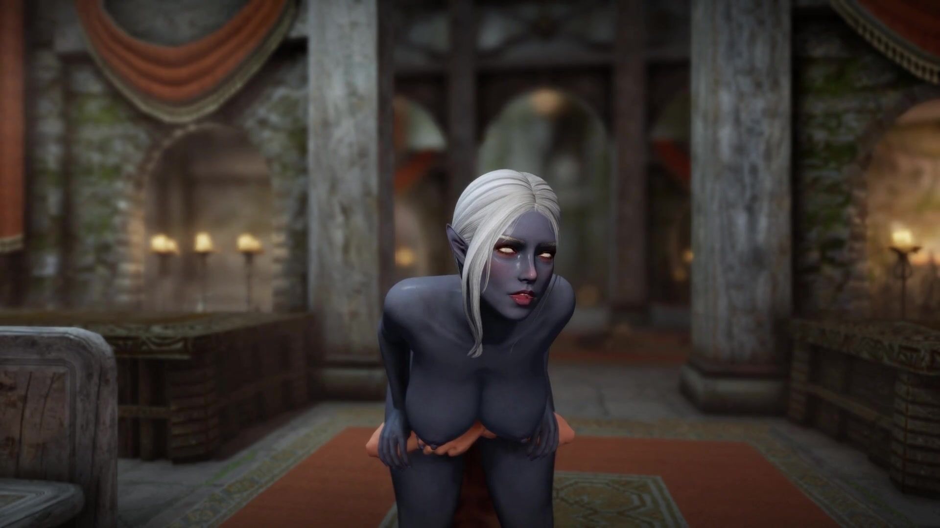 This hentai PORN video description is about a mysterious Dunmer witch who goes to the Hall of the Dead to seduce Andurs the priest of Arkay.