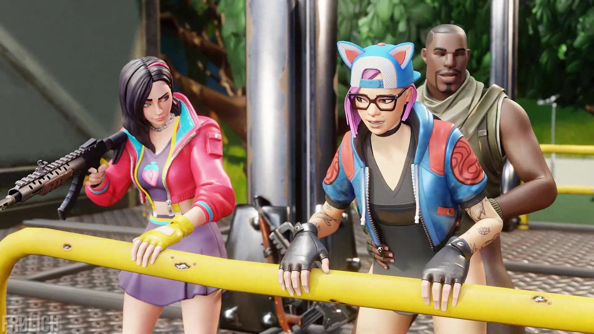 Hentai Porn Description Rephrasing: In the middle of battle, Britebomber releases some tension by getting off with Jamal. Lynx's partner Rox looks perplexed and annoyed but perhaps also jealous.