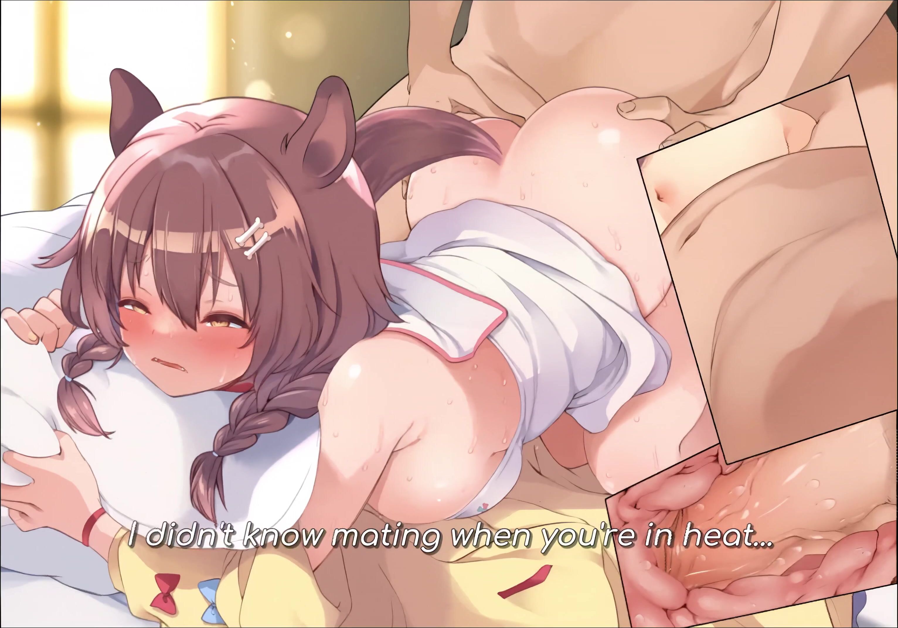 "Fujisaki Hikari and Korone in a heated embrace."