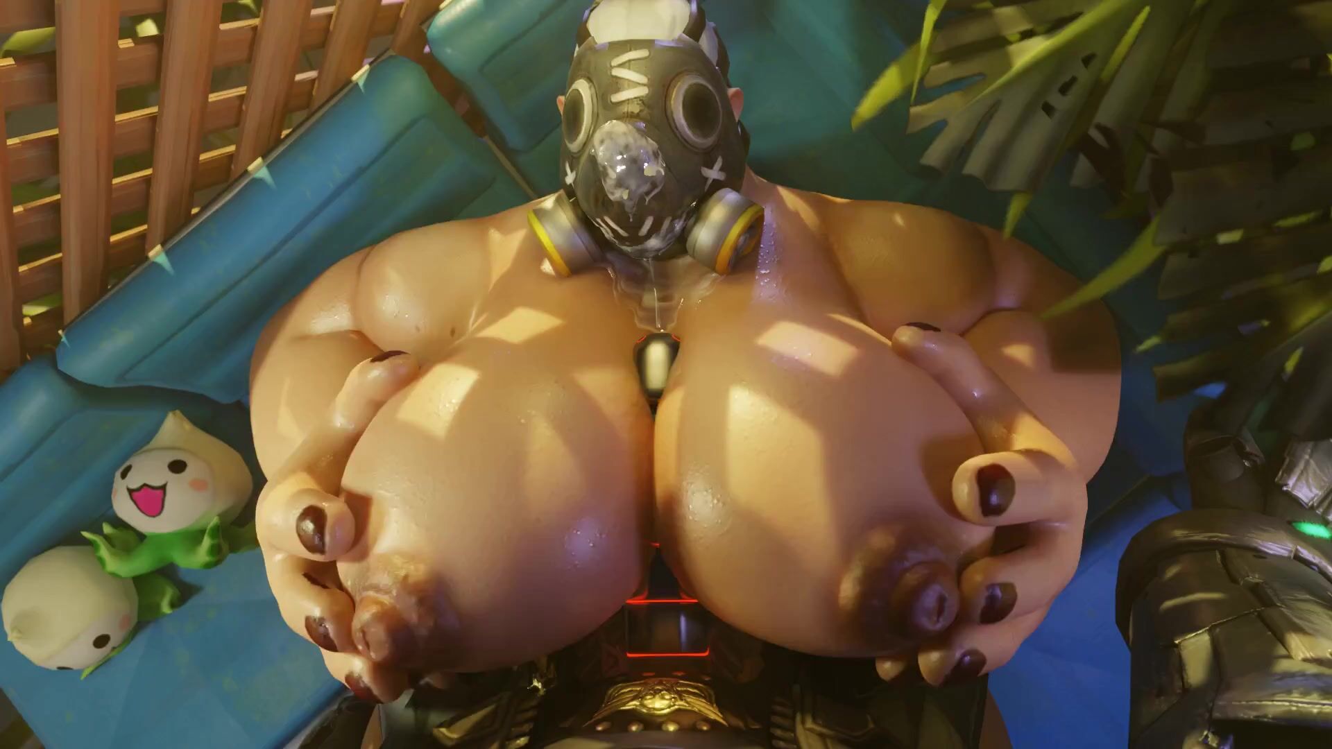 Hentai PORN video description rephrased: Roadhog should not be lounging outside in a public area without his shirt on. It was only a matter of time before B.O.B took advantage and seized the moment. Doesn't look like he's stopping anytime soon...