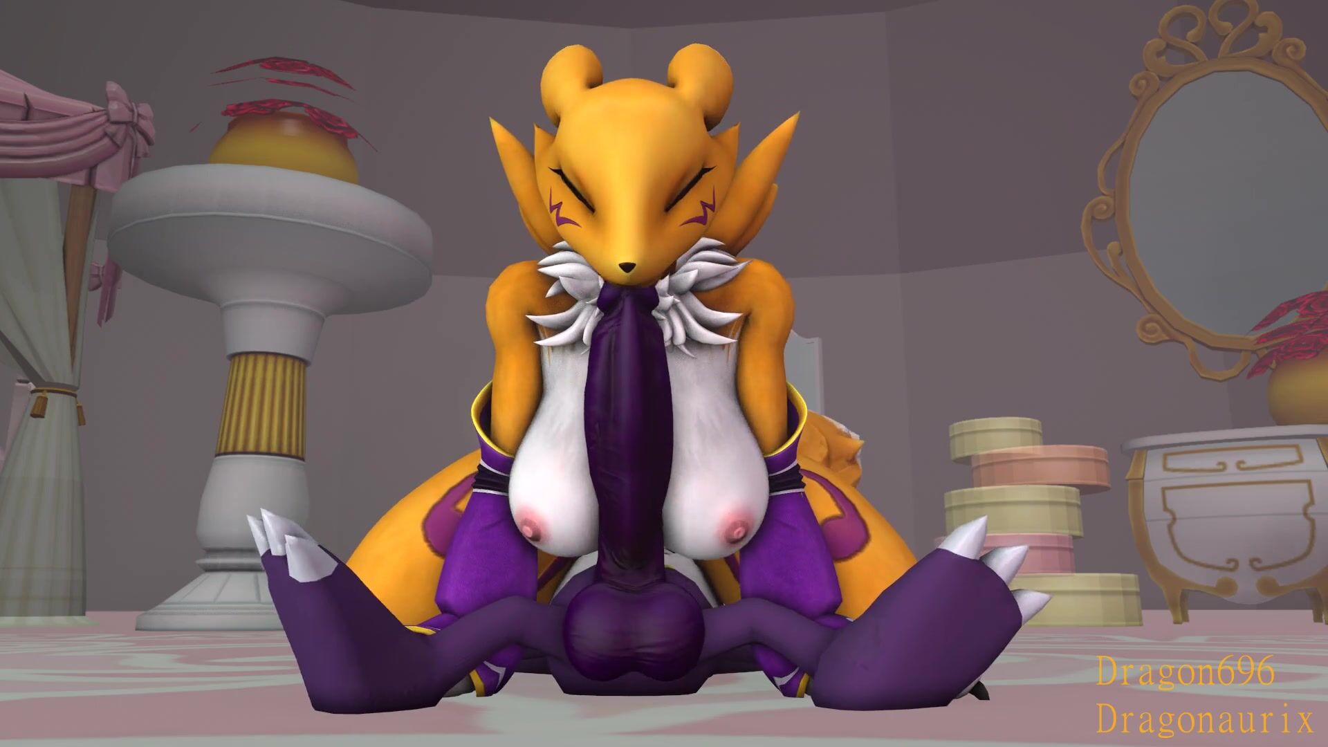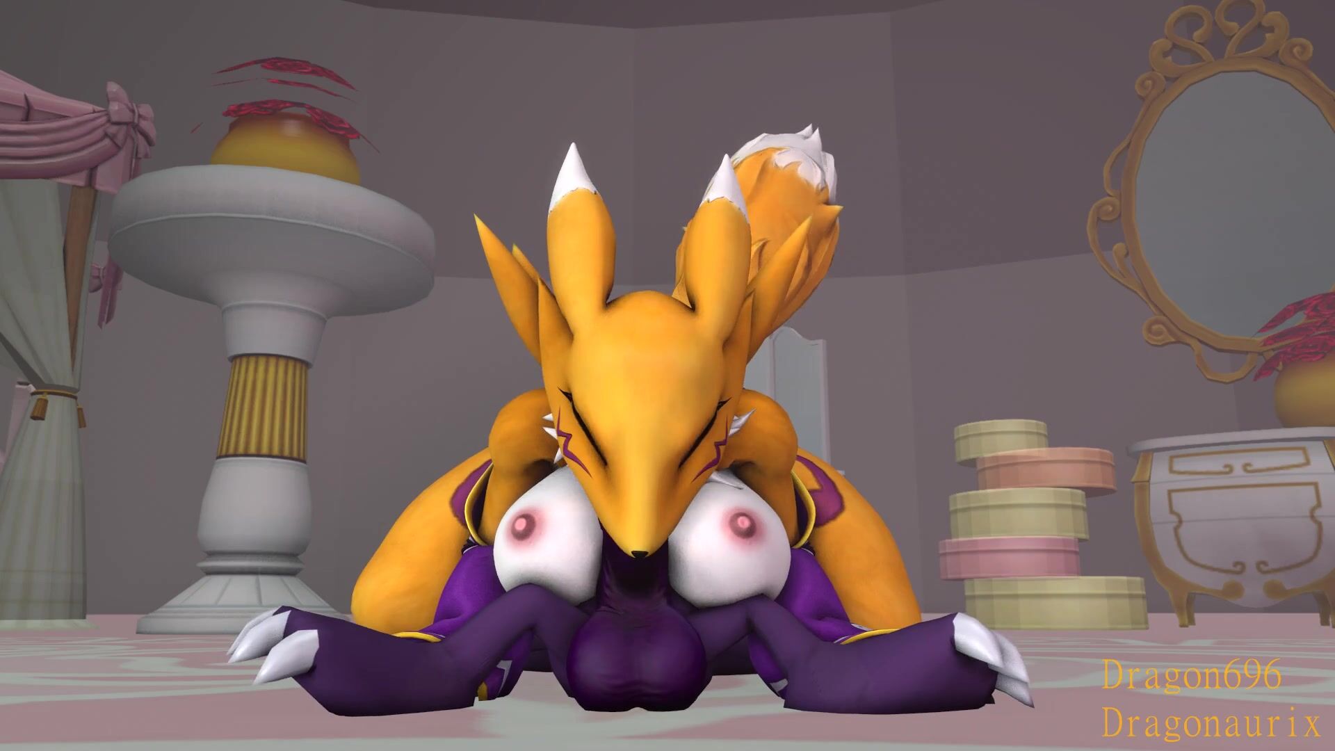 'Gargomon and Renamon go down on each other during an intense orgy'