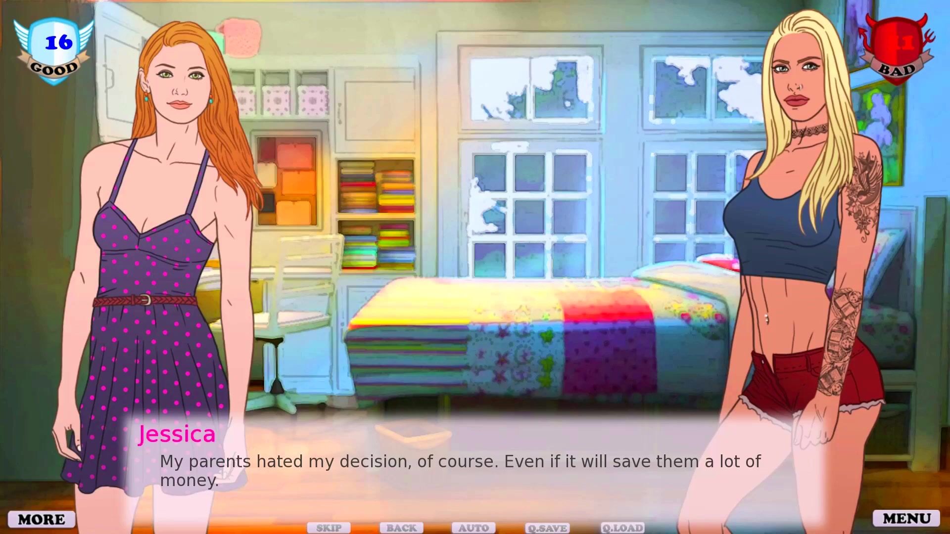 Chapter 13: I Need to Fuck Someone, and I Don't Care Who! In this chapter, Ashley holds a cybersex session with Eric, during which she realizes that she might actually be experiencing a much higher sex drive than she ever suspected. After that, she gets to console a repenting Eva, and has a long chat with Jessica about family values, anal sex, and threesomes - no actual sex though (although the game's description suggests that there will be some sexual content later on). Playlist: https://rule34video.com/playlists/8823092Fgood-girl-gone-bad-path-2 Game link: http://f95zone.to/threads/good-girl-gone-bad-v1-2-jasmin-dlc-eva-kiss.2633 Patreon link: https://www.patreon.com/EvaKiss