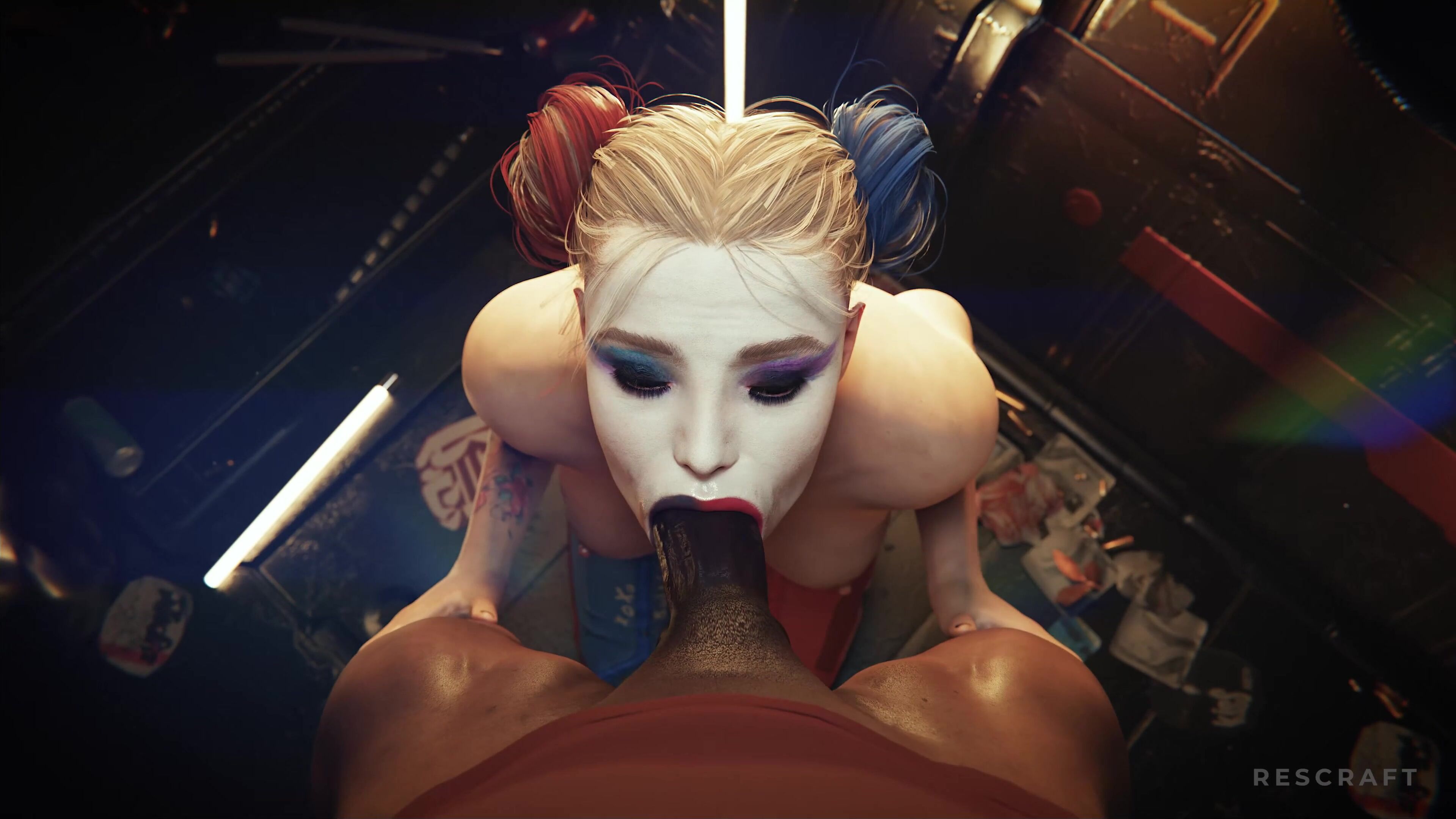 "Harley Quinn takes a ride on Rescraft, leaving her panties behind!"