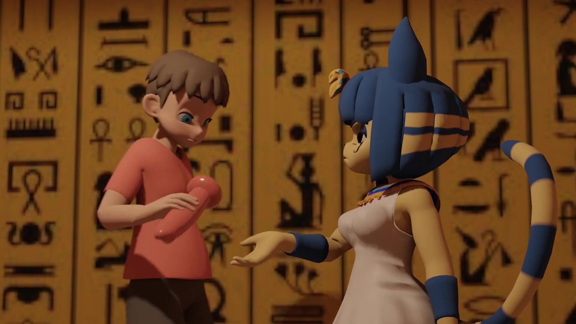 The sexy anime characters Sun and Salia, along with their friend Ankha, have a pas...