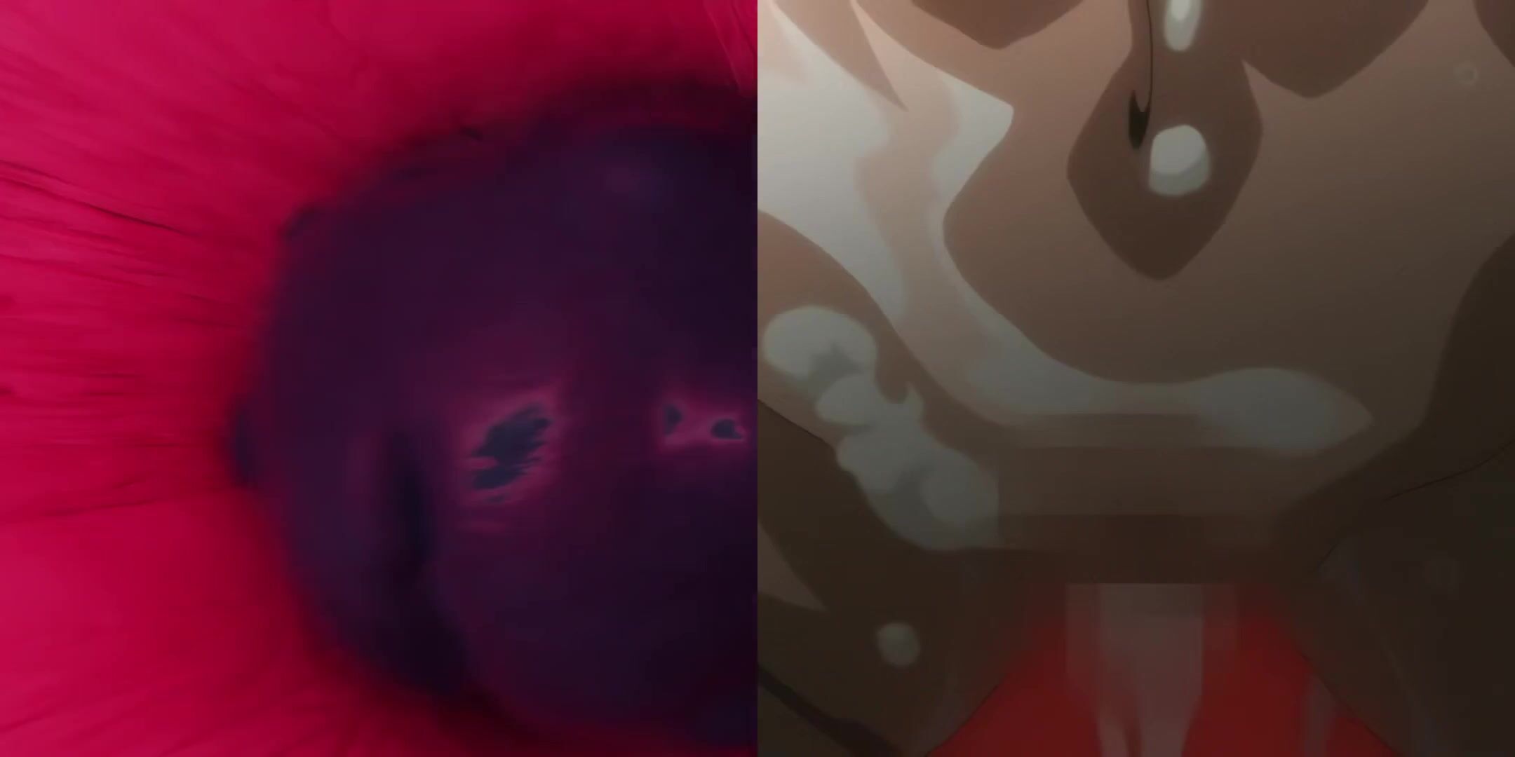 Just a side by side comparison of Slayed.Coom's Kiriko Taimanin Asagi animation with the original animation he used for reference next to it.