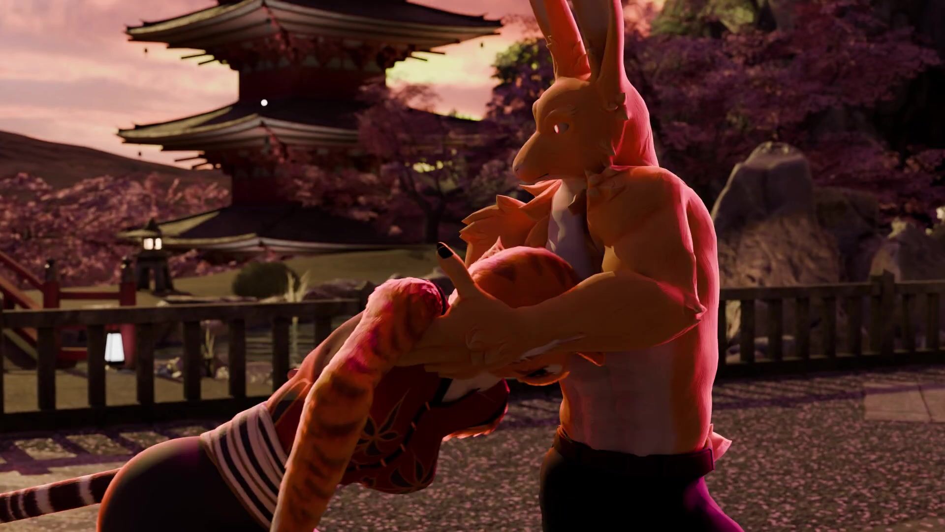 Teacher Tigress finds a way to motivate a poor-performing student. She asks her rabbit lover, Oolaytiger, to voice-act as the tigress and model Furromantic's body for the hentai video description.