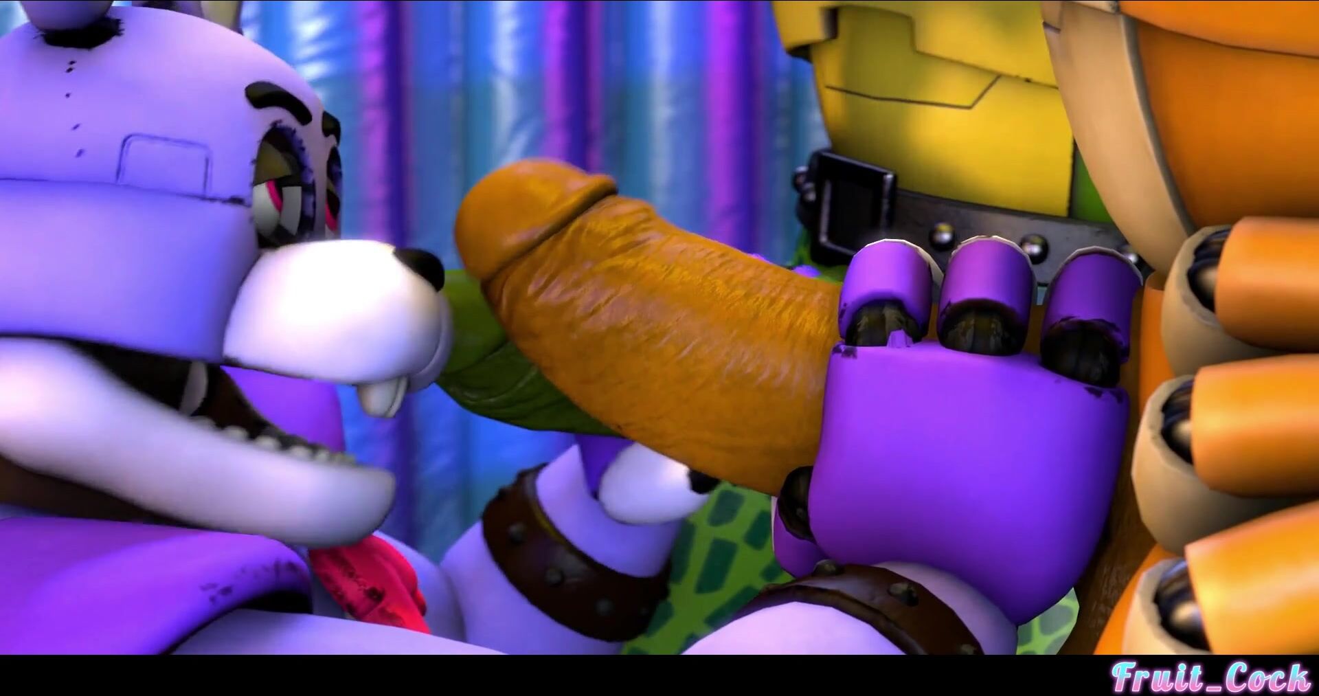 'Horny Bonnie explores Freddy's musky cock with her nose'