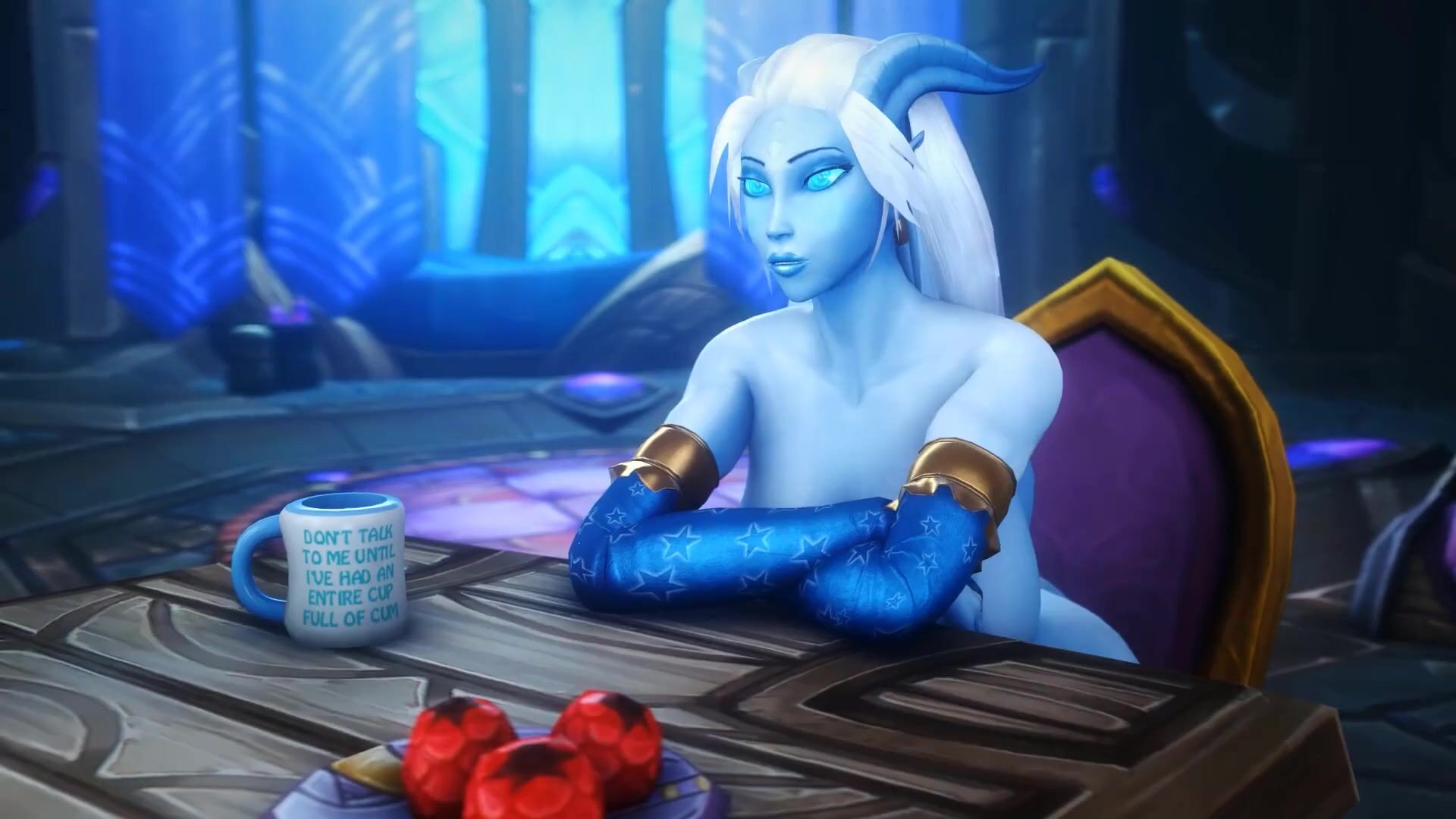 This video description is about a pornographic hentai movie that features a man who tries to suckle on the large, milk-filled breasts of a woman. The text also mentions that it was compiled by Blaster-one from Patreon and created by Noname55.