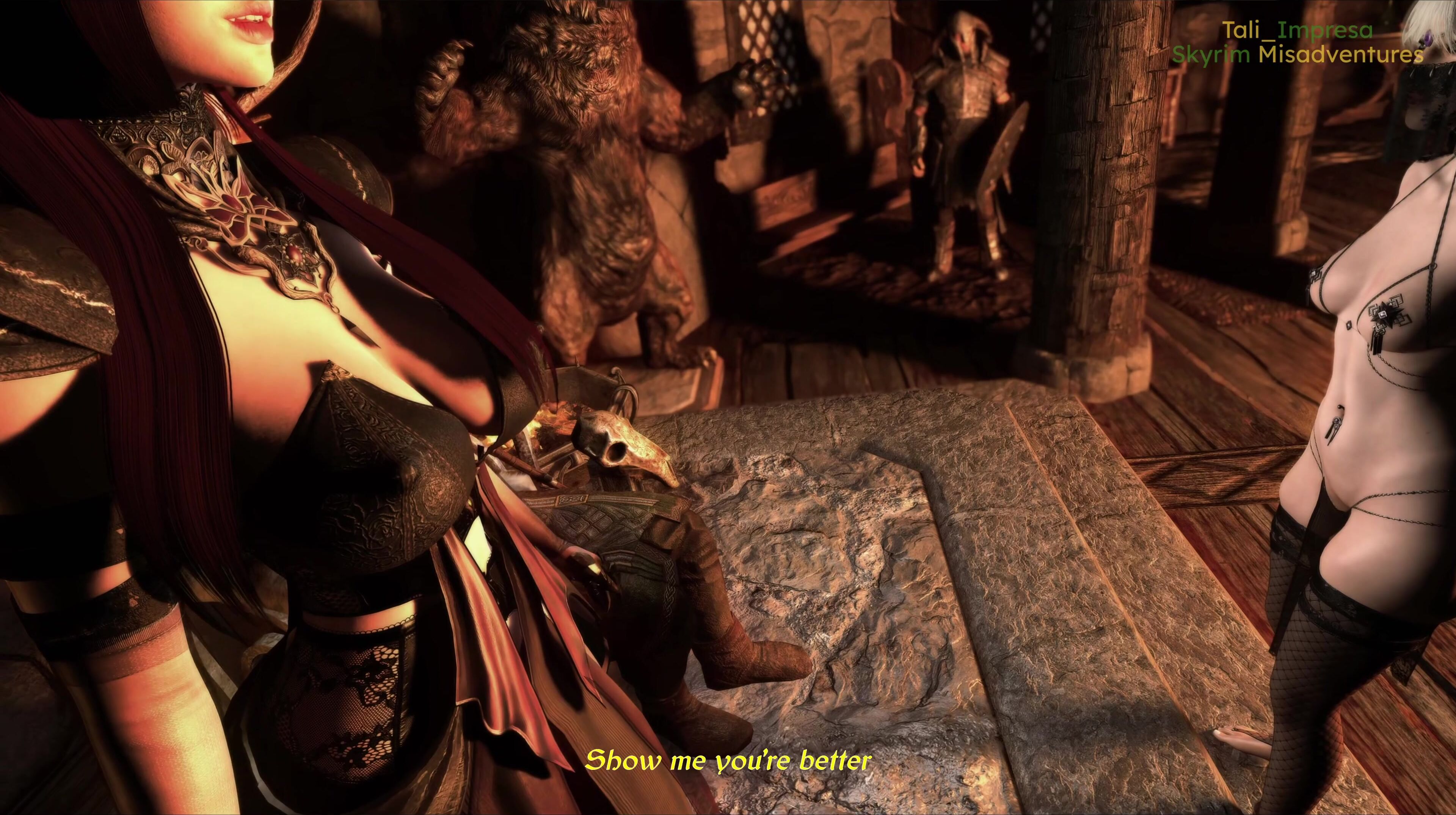 Summary of the hentai PORN video description: A Breton thief arrives in Falkreath for a burglary job at a mill outside town. She plans to steal the miller's comically over-sized jewel and skip town successfully. However, she might be spotted by the first guards she comes across and end up in the Jarl's service to avoid an overly harsh sentence. In this scenario, she will meet an assortment of characters including his Daedric succubus companion. I don't know what will happen next, but the suspense is killing me! This video is an extended preview for my new video "Serving Siddgeir". For the full length video with more content, please visit this link: https://linktr.ee/tali_impresa Does that help?