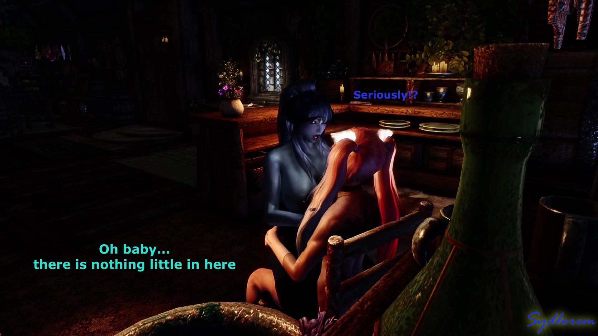 I think the correct one would be: Pei taking advantage of Elanors innocence and her horse cock