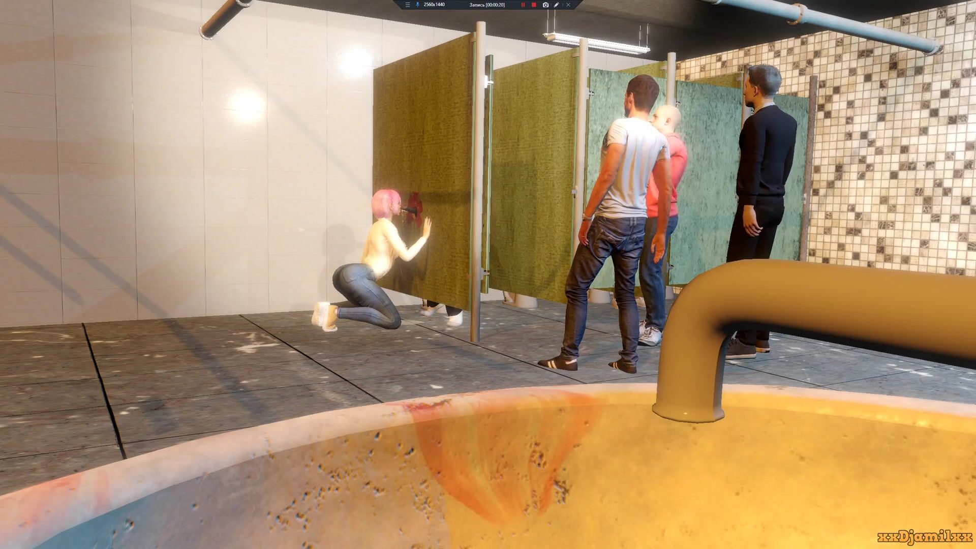 In the gutter, he finds solace from his misery as he indulges in public restroom sex
