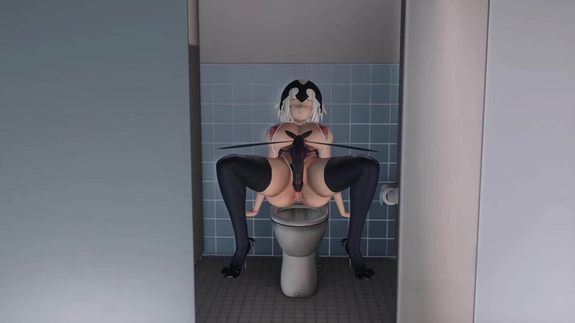 Jeanne DArc gets fucked in the bathroom stall by an insect sword