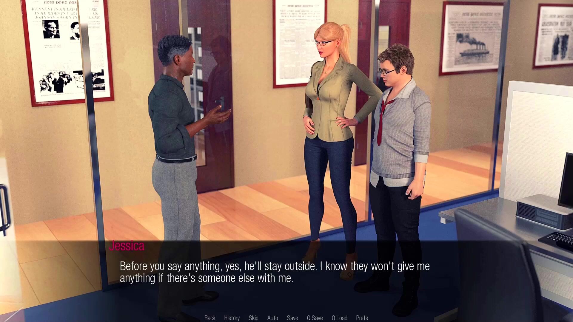 DETAILED PLAYTHROUGH - JESSICA O'NEIL'S HARD NEWS [StoperArt / Female Perspective / 2018]: Chapter 4. Jessica's Mammary Manipulation In this chapter, Jessica saves Blake from harrassment, planting a good basis for a future lesbian relationship befriends a confused teenager at work and successfully utilizes some of her female charm to obtain potentially important evidence from a police officer. Playlist: rule34video.com/playlists/885672/jessica-o-neil-s-hard-news/ Game link: f95zone.to/threads/jessica-oneils-hard-news-v0-65-beta-stoperart.15081/ Patreon link: www.patreon.com/stoperart