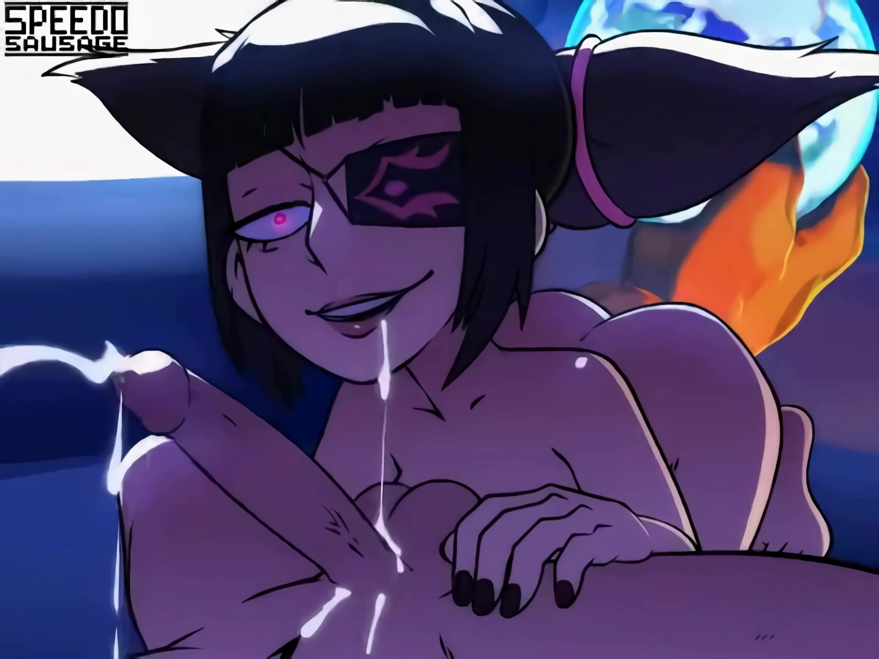 Watch as the sexy demon slayer fights off a horde of horny demons with her magical...