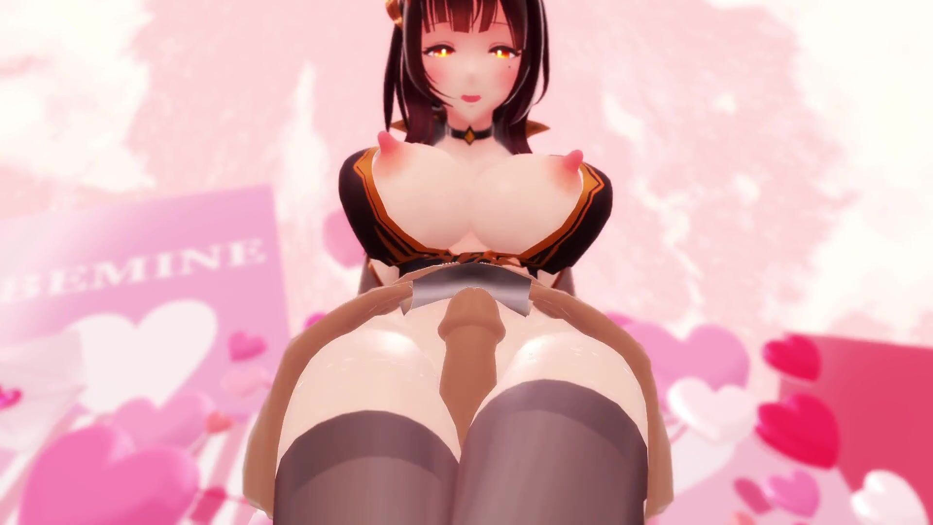 "【kangxi MMD R18】 Kimagure Mercy": Anime characters with bouncing breasts and big butts in a wild sex scene.
