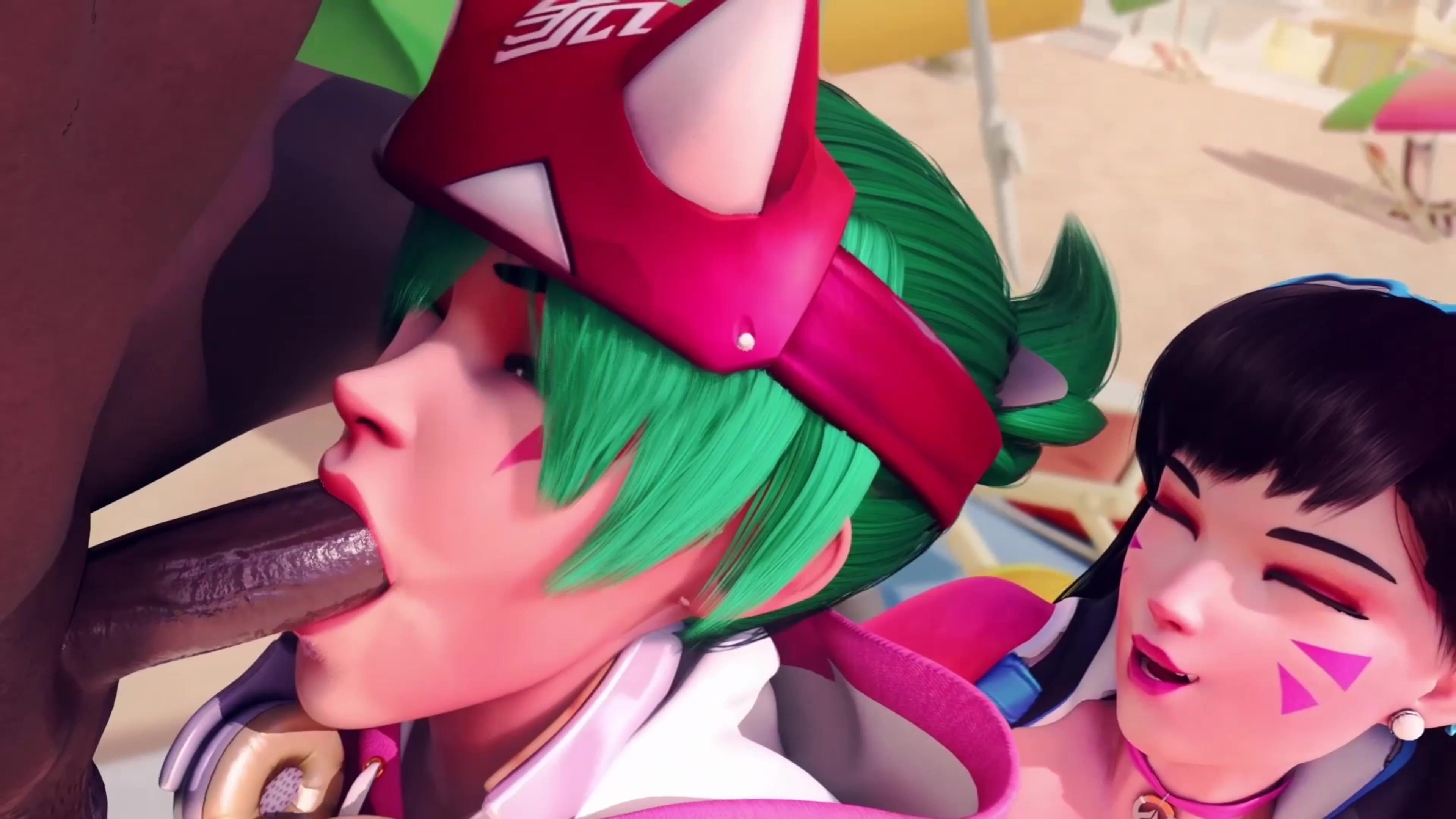 Kiriko And Dva At The Beach [Blacked][Red404]