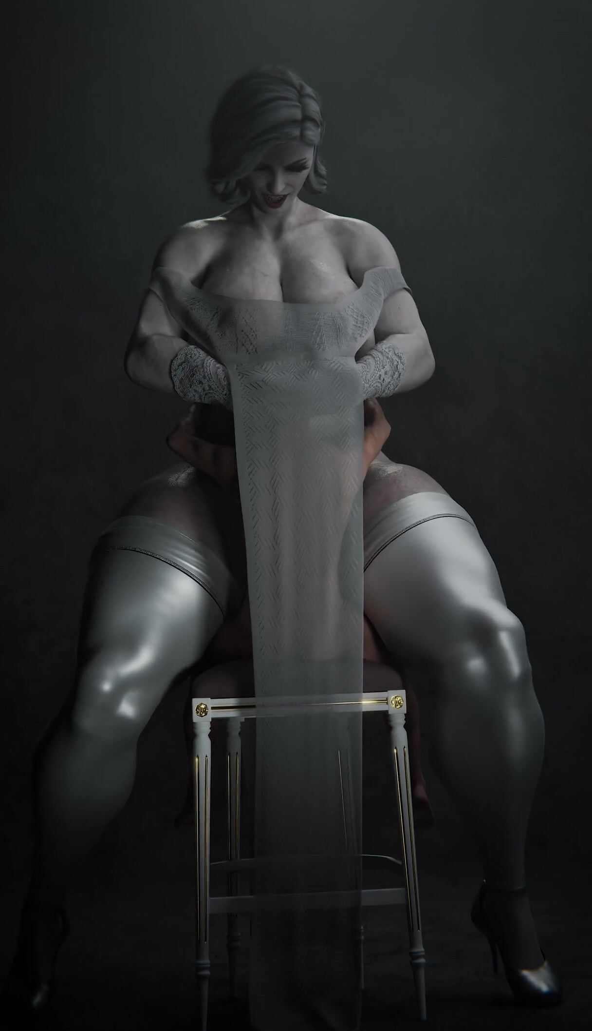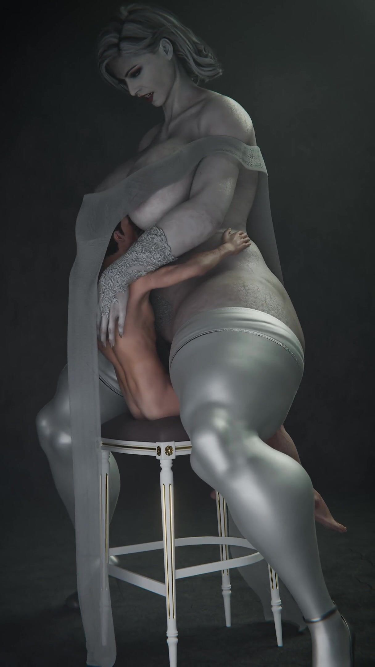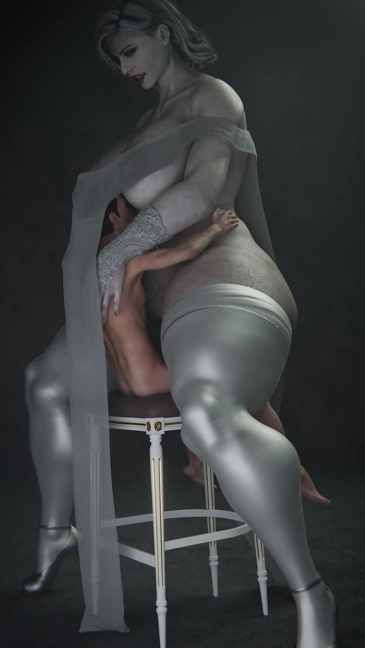 Lady Dimitrescu Sits on the Couch and Sucks Her Neighbors Dick - Jeckylll