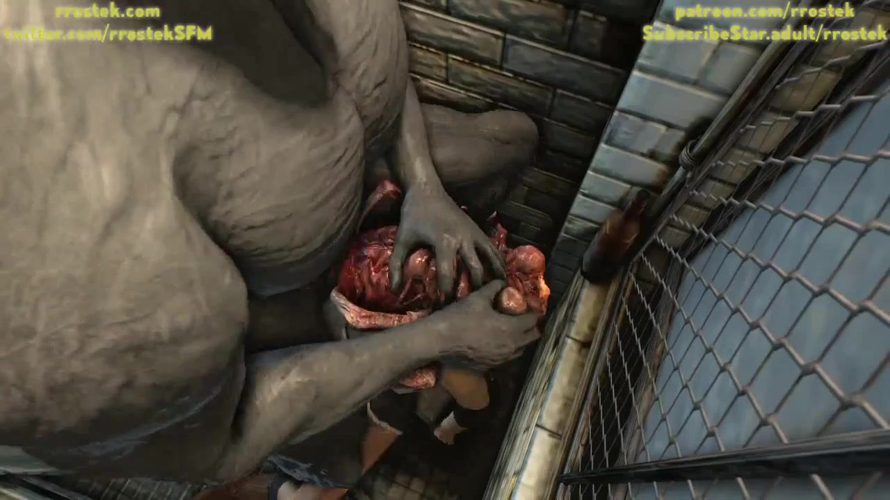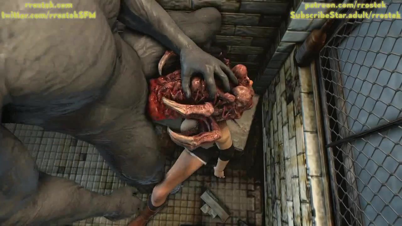 Jill Valentine is getting destroyed by Mr X through a parasite. Good deepthroat face fucking.